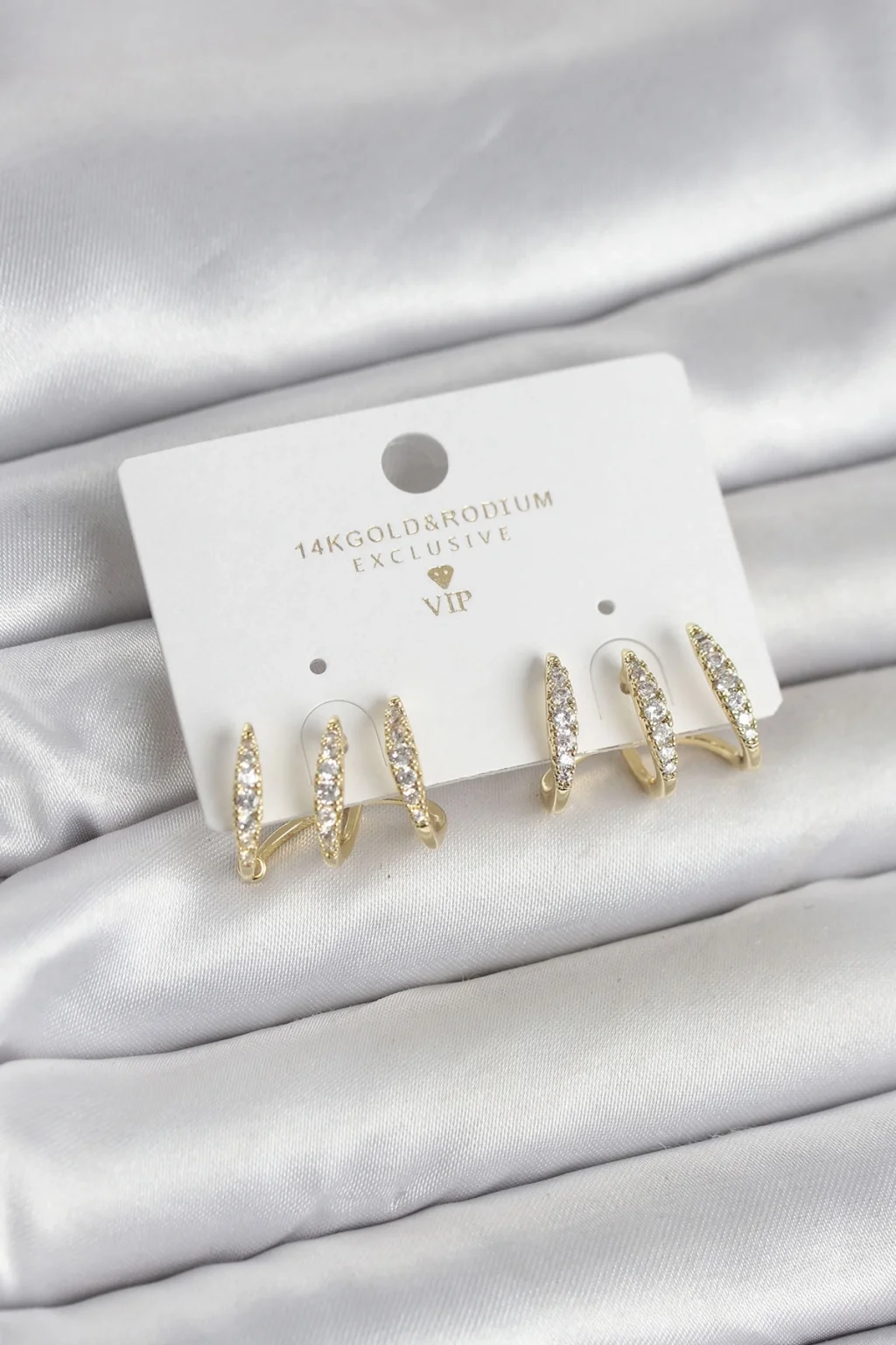 BUĞZ Gold Renk Pirinç Zirkon Taşlı Kadın Küpe
