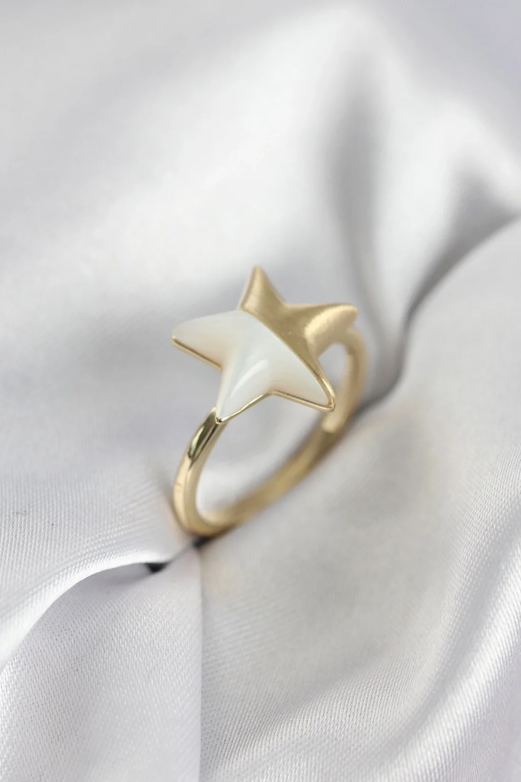 BUĞZ Gold Renk Sedefli Yıldız Model Kadın Yüzük