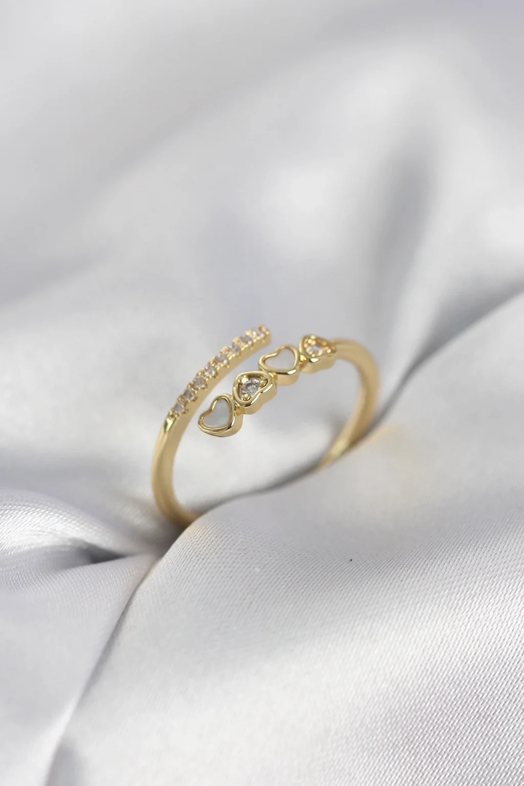 BUĞZ Gold Renk Zirkon Taşlı Minimal Kalp Model Kadın Yüzük