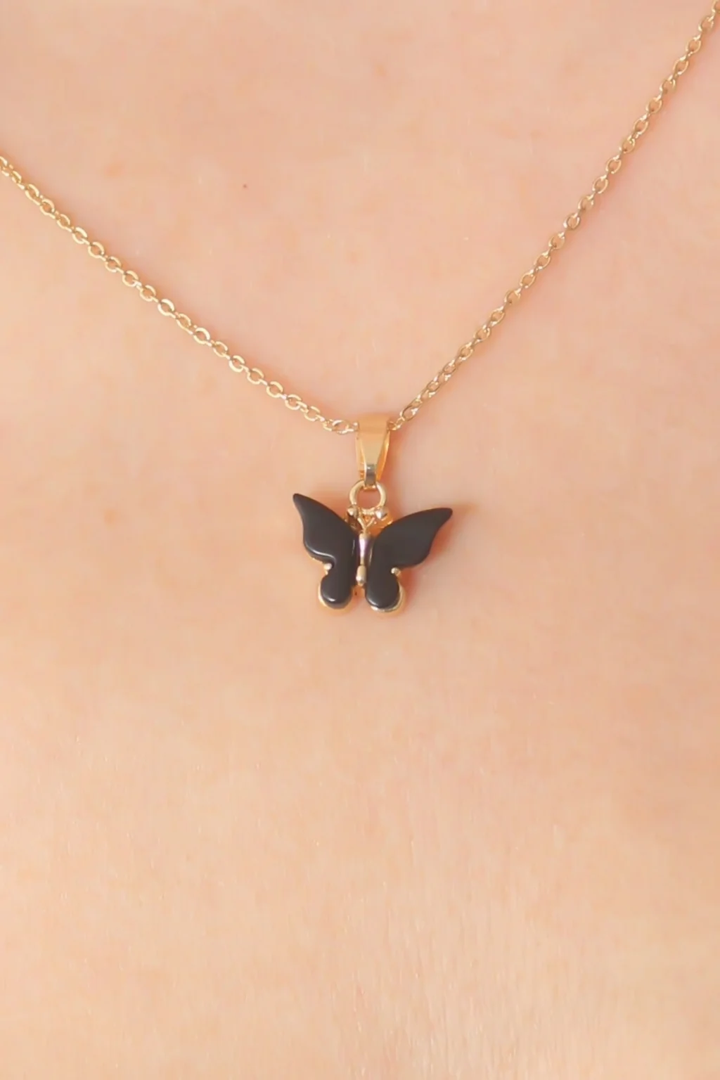 BUĞZ Gold Siyah Renk Kelebek Figür Kadın Kolye
