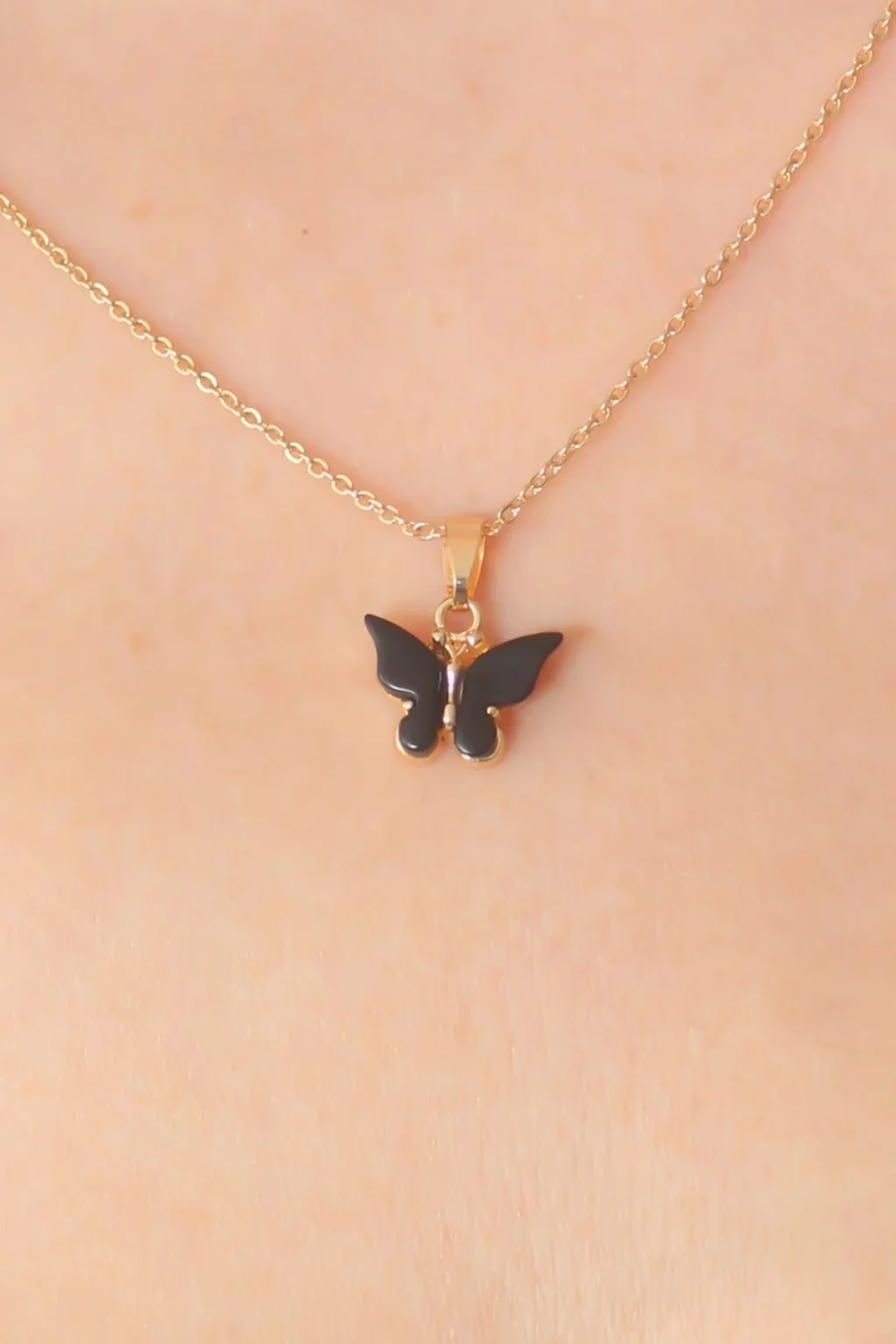 BUĞZ Gold Siyah Renk Kelebek Figür Kadın Kolye - BUĞZ
