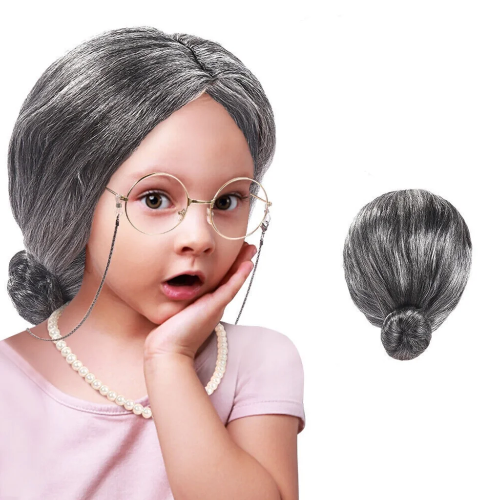 Gri Renk Yaşlı Peruğu Anneanne Babaanne Peruk Topuz, yetişkinler ve çocuklar için uygun, sizi geçmişe götürecek bir aksesuardır. Gri rengi ve topuz modeli ile yaşlı bir anneanne veya babaanne görünümü için idealdir.