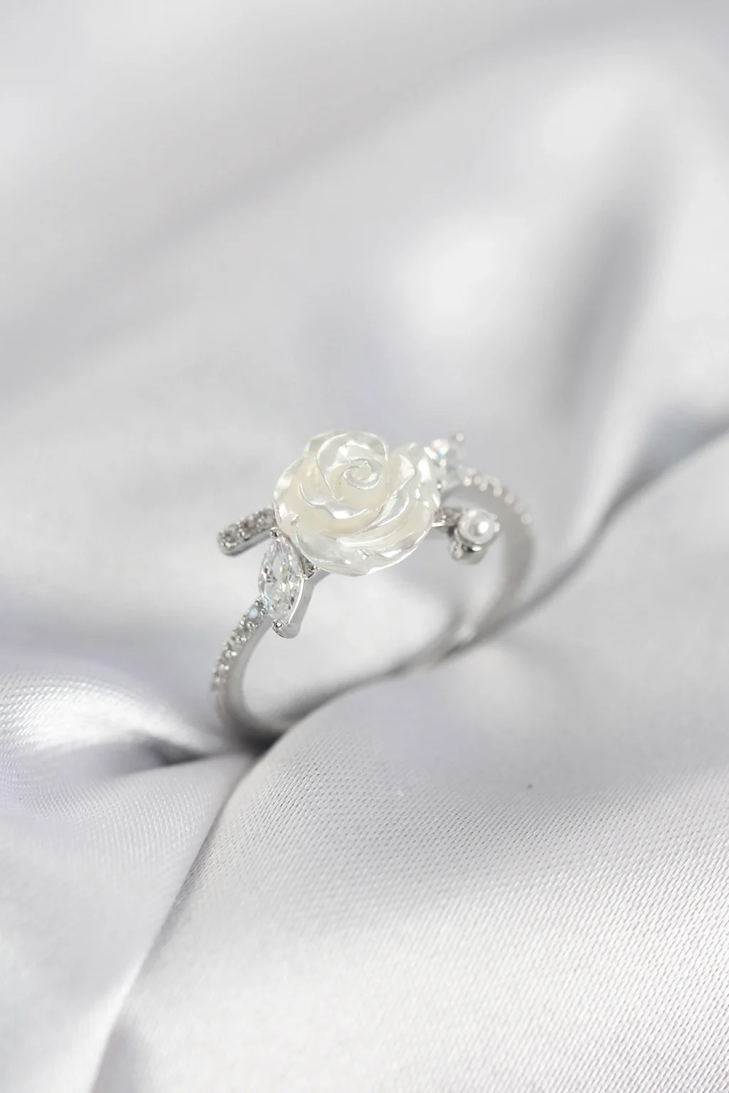 BUĞZ Gümüş Renk Gül Model Zirkon Taşlı Kadın Yüzük