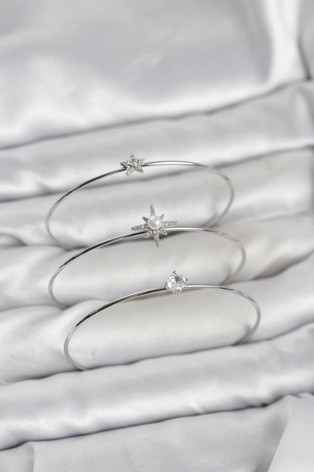 BUĞZ Gümüş Renk Kutup Yıldızı Model Zirkon Taşlı 3'lü Kadın Bileklik Kombini