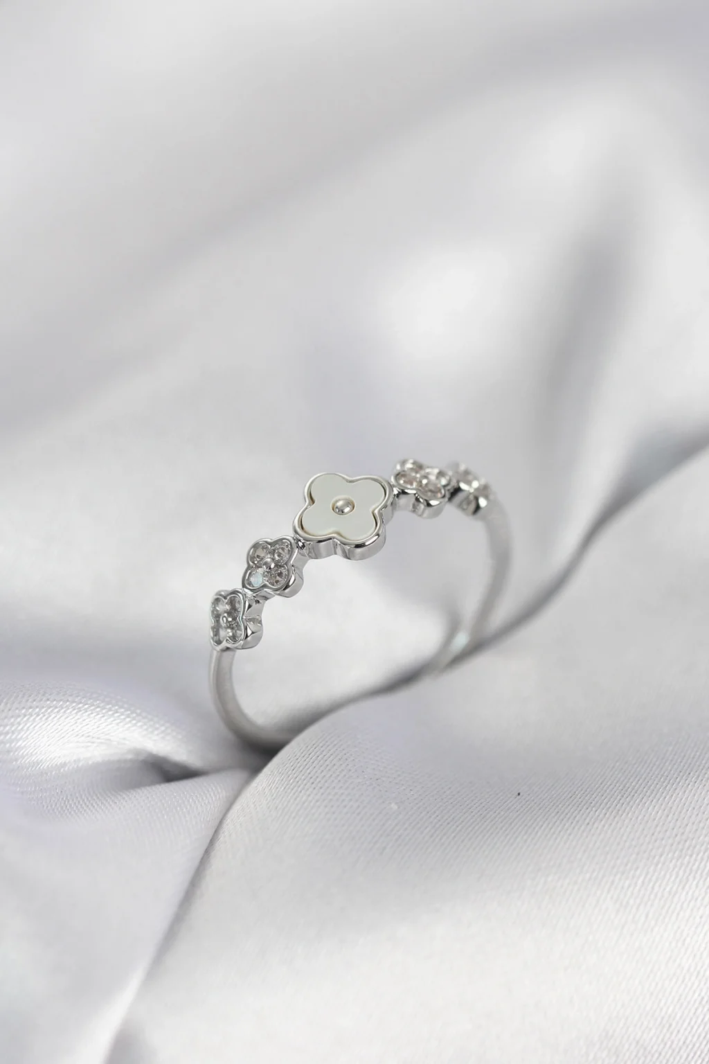 BUĞZ Gümüş Renk Minimal Yonca ve Zirkon Taşlı Kadın Yüzük