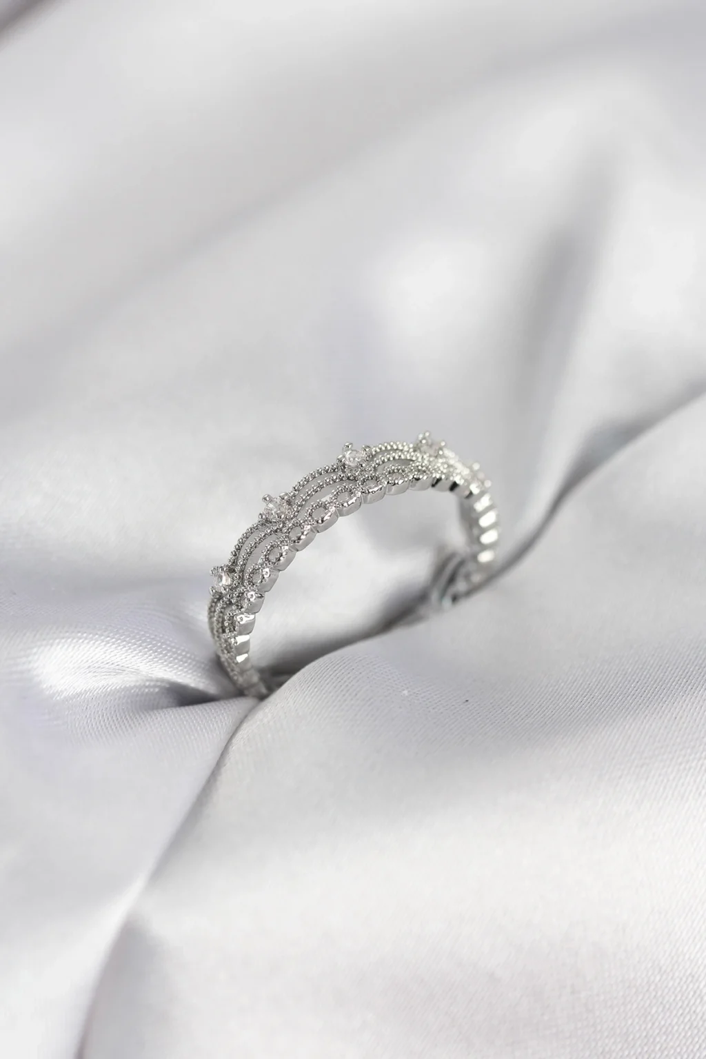 BUĞZ Gümüş Renk Motif Desenli Zirkon Taşlı Kadın Yüzük