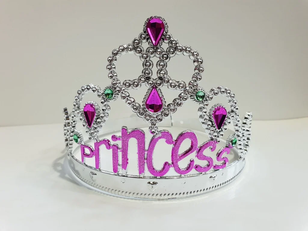 BUĞZ Gümüş Renk Prenses Yazılı Parti Tacı 60 cm