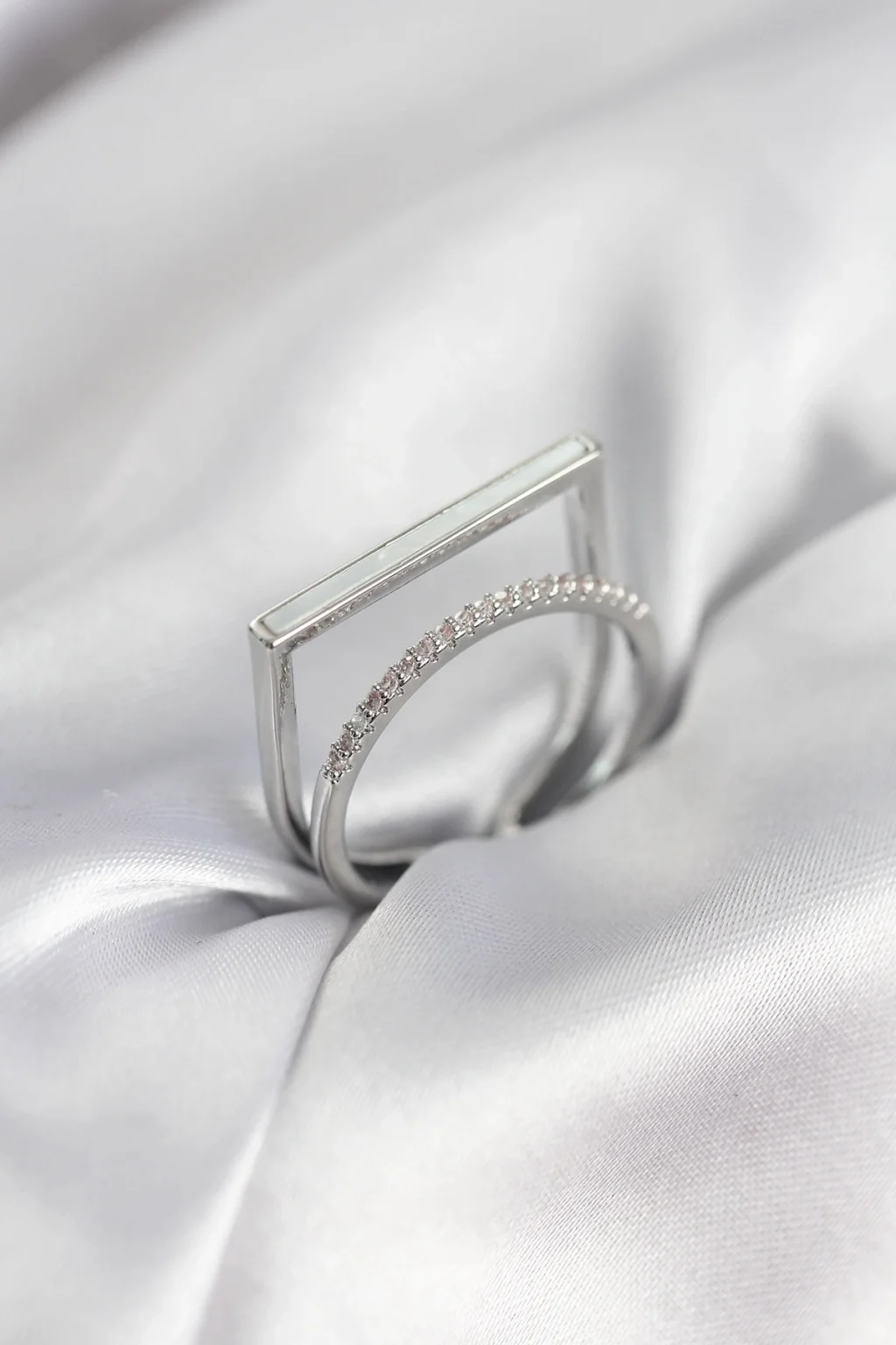 BUĞZ Gümüş Renk Sedefli Zirkon Taşlı 2'li Kadın Yüzük