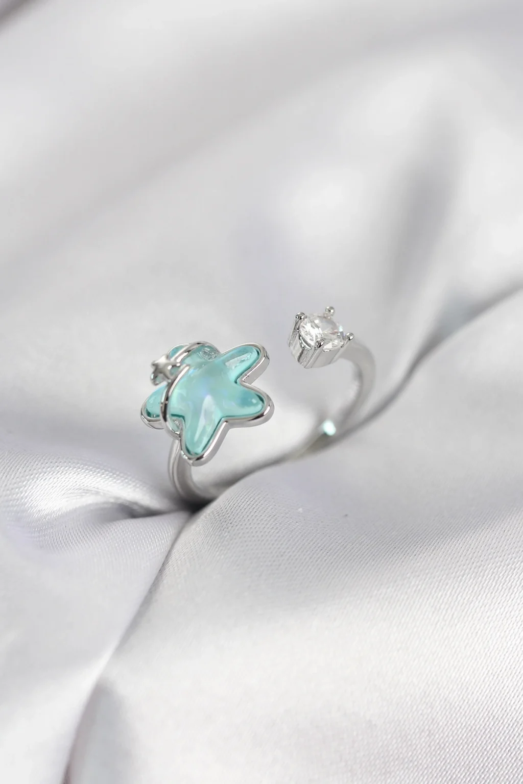 BUĞZ Gümüş Renk Turkuaz Yıldız Model Kadın Yüzük