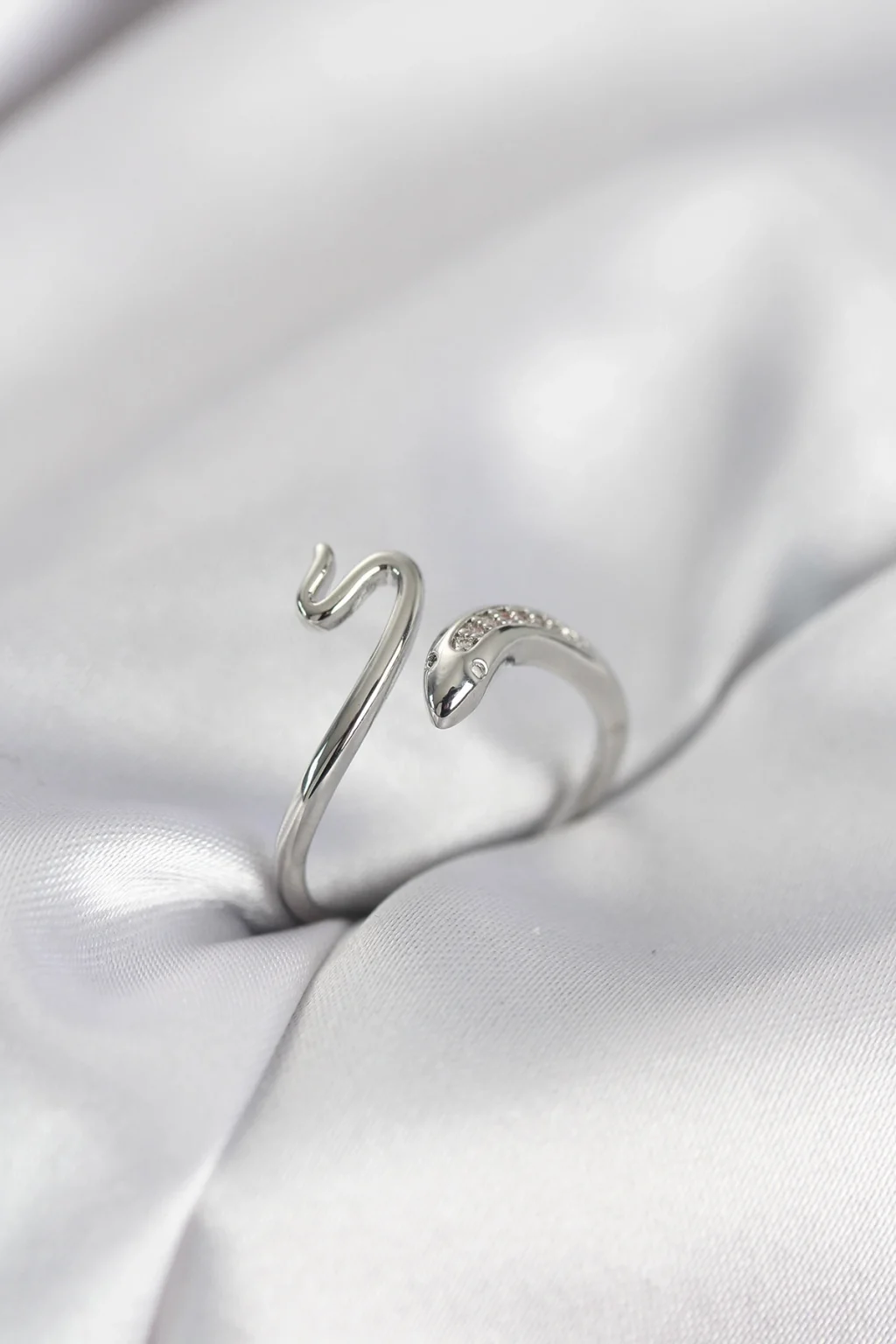 BUĞZ Gümüş Renk Yılan Model Zirkon Taşlı Kadın Yüzük