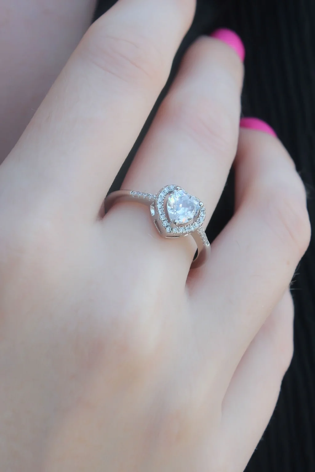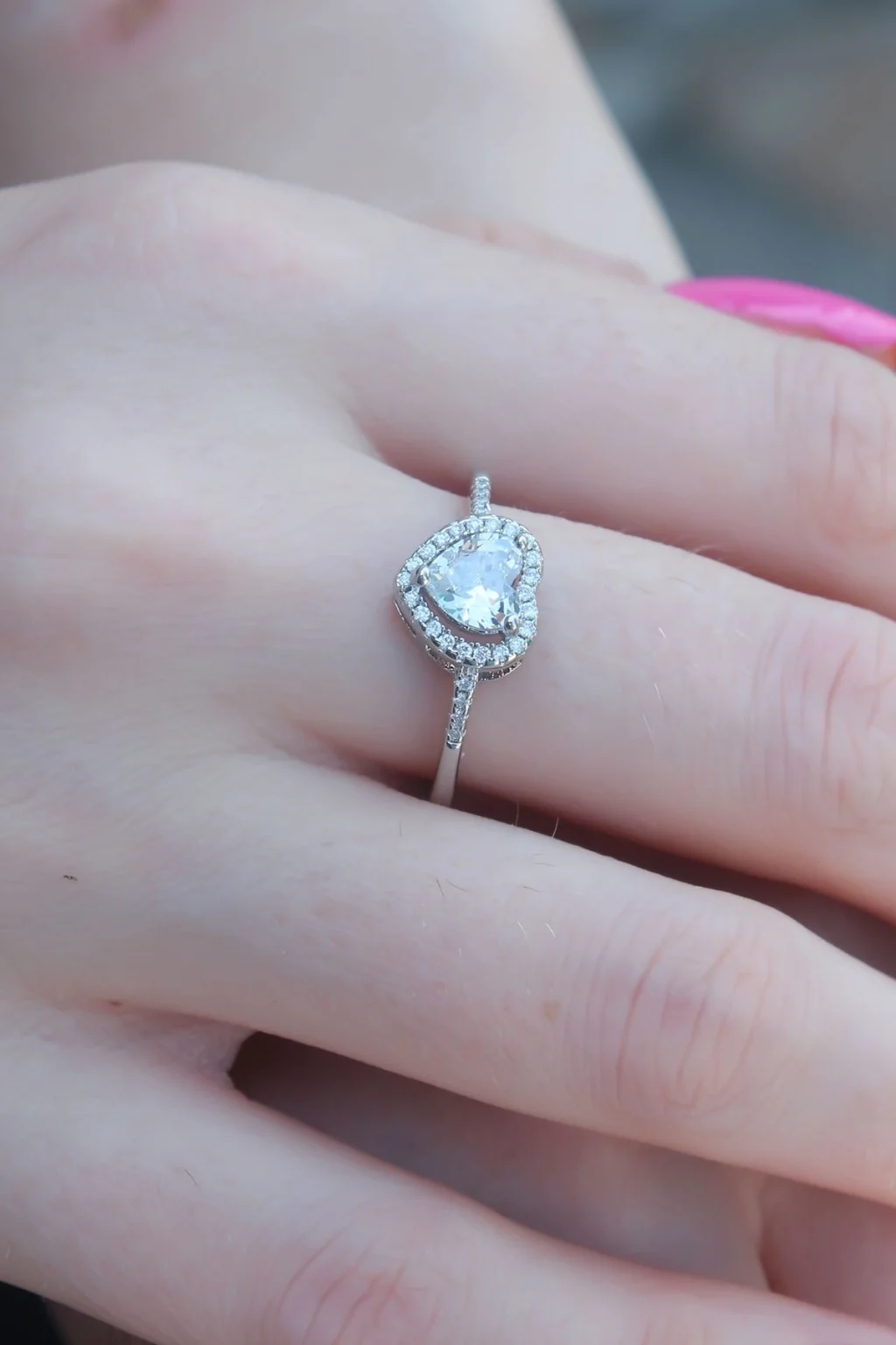 BUĞZ Gümüş Renk Zirkon Taşlı Kalp Model Charm Pirinç Kadın Yüzük