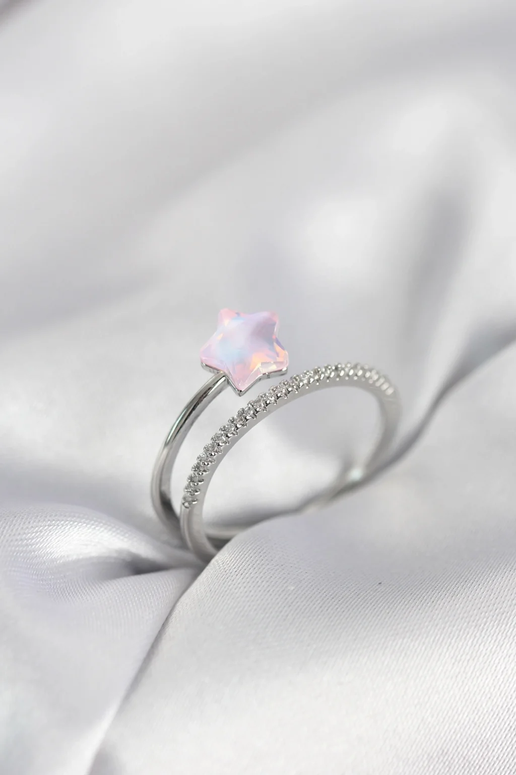 BUĞZ Gümüş Renk Zirkon Taşlı Pembe Halley Model Kadın Yüzük