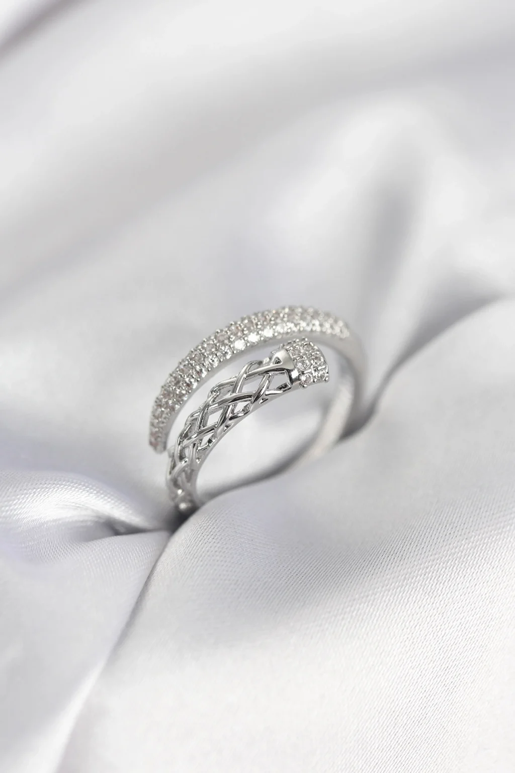 BUĞZ Gümüş Renk Zirkon Taşlı Sarmal Kadın Yüzük