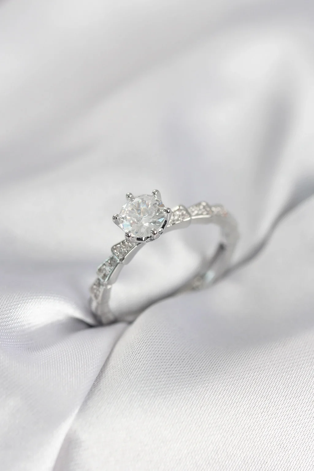 BUĞZ Gümüş Renk Zirkon Taşlı Tek Taş Model Kadın Yüzük