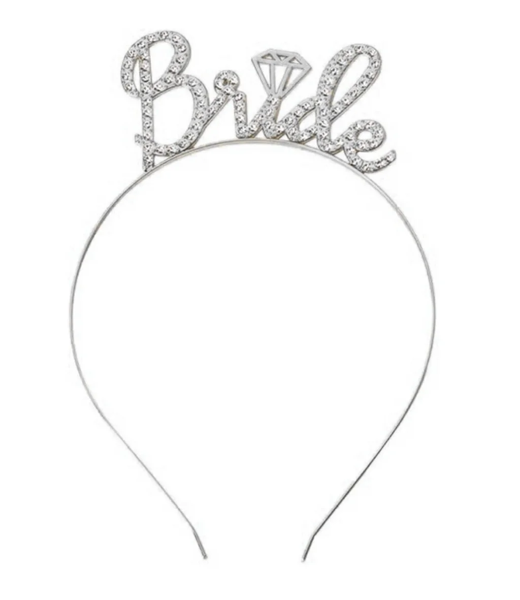 BUĞZ Gümüş Renk Bekarlığa Veda İtalik Yazı Alyanslı Bride Taç