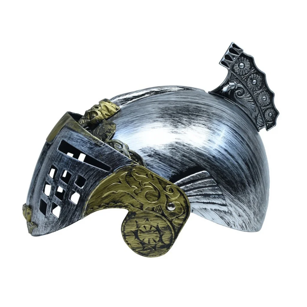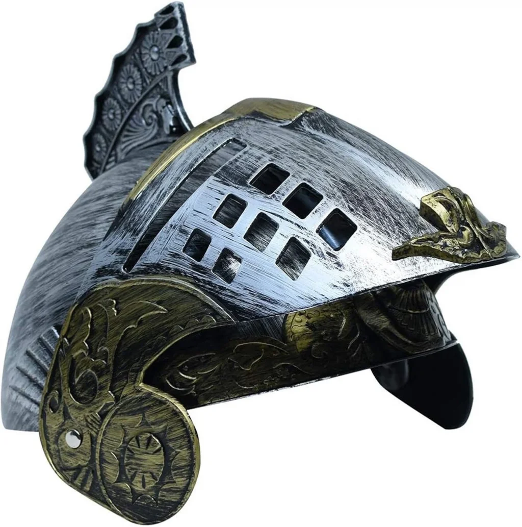 BUĞZ Gümüş Üzeri Altın Renk Oynar Başlıklı Romalı Bizans Kaskı Miğferi 25x20 cm
