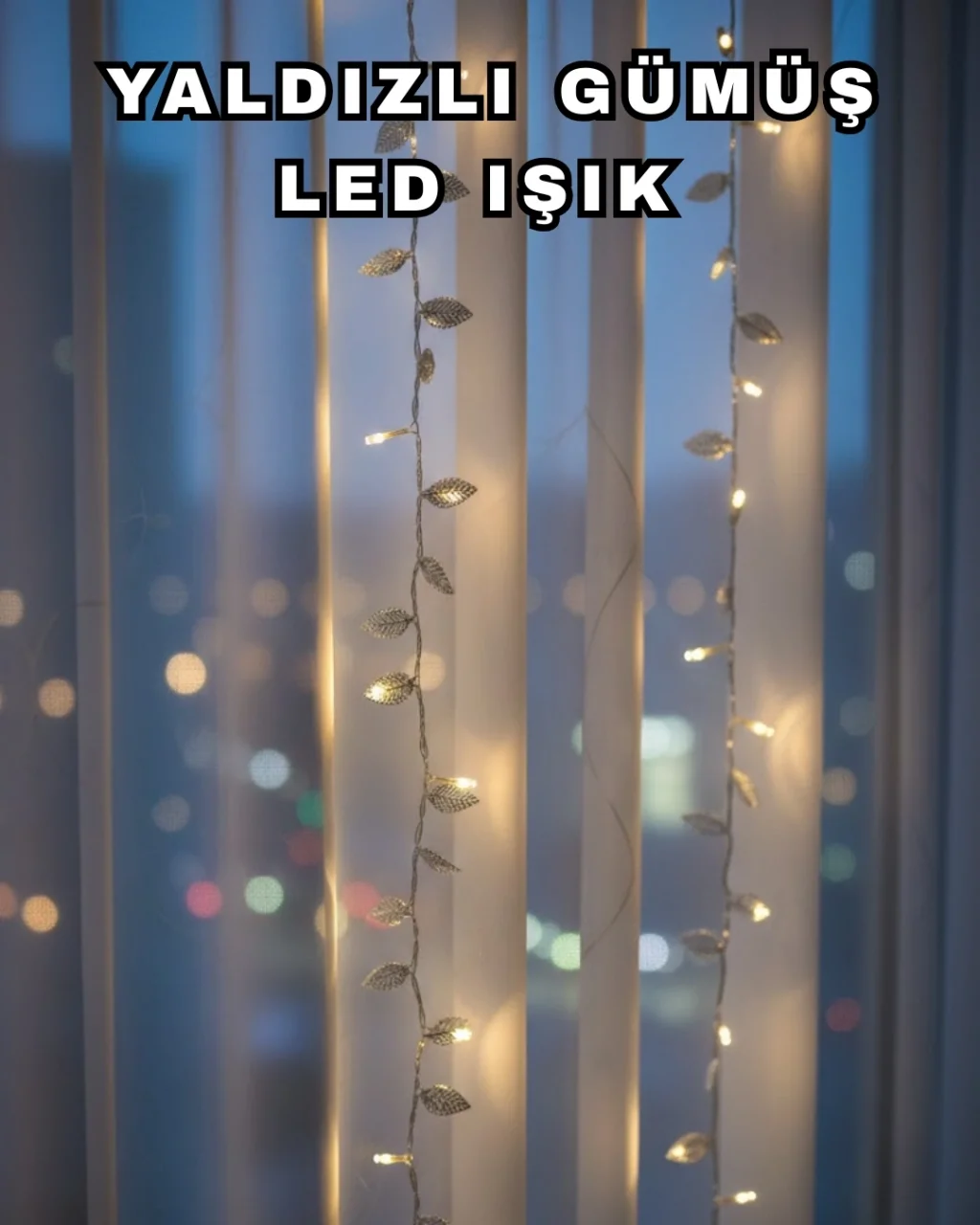 BUĞZ Gümüş Yaprak Tasarımlı LED Işık Pilli Ev ve Vitrin Dekoru