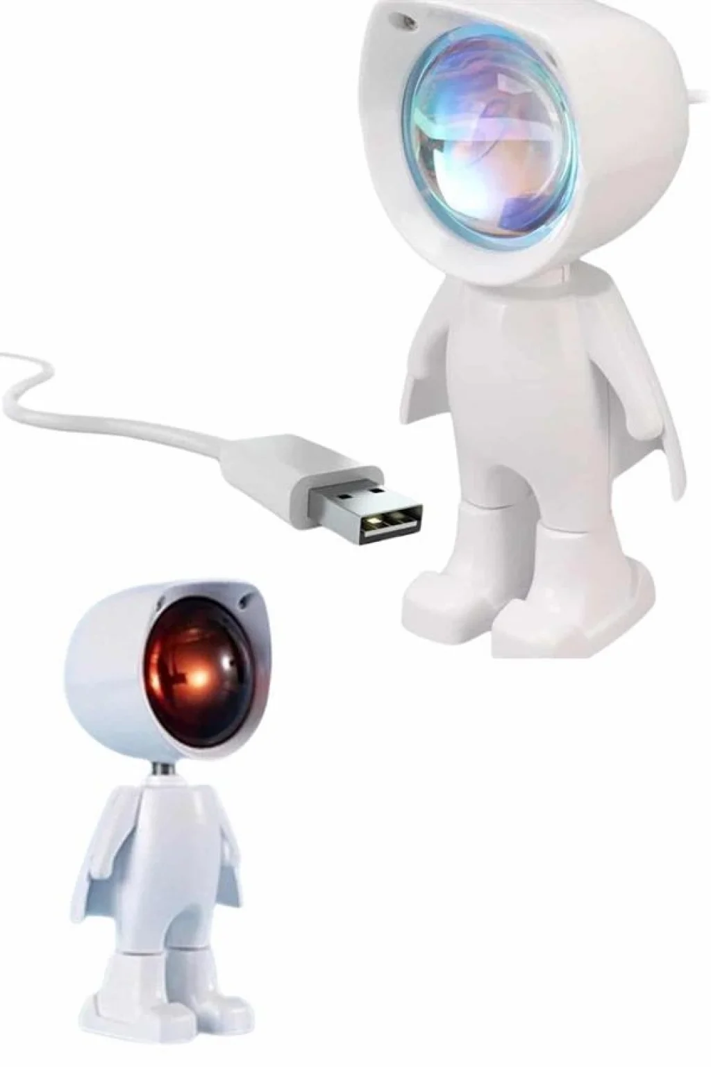 Bu gün batımı efektli dekoratif lamba, sevimli astronot tasarımıyla yalnızca bir aydınlatma aracı değil, aynı zamanda bulunduğu ortama karakter katan şık bir obje olarak öne çıkar. Gün batımı ışık tonlarıyla mekanlara sıcaklık ve romantizm katan bu lamba, özellikle estetik detaylara önem veren kullanıcılar için tasarlanmıştır. Minimalist boyutları sayesinde ister evde ister dış mekânda kolaylıkla kullanılabilir.Işık kaynağı olarak kullanılan 5 Watt’lık LED, enerji tasarrufuyla birlikte uzun ömürlü ve göz yormayan yumuşak bir aydınlatma sunar. Lamba kafasının 360 derece yatay ve 60 derece dikey hareket edebilmesi, ışığın yönünü ihtiyacınıza göre özgürce ayarlayabilmenizi sağlar. Böylece ister tavanı ister bir duvarı yumuşak bir gün batımı tonuna bürüyebilir, ister kitap okurken odaklı bir ışık elde edebilirsiniz.Dokunmatik kontrol paneli, kullanım kolaylığı sağlayarak lambayı açma, kapama ve parlaklık ayarı yapma imkânı tanır. Aynı zamanda şarjlı kullanım özelliği sayesinde priz bağımlılığını ortadan kaldırır; tam dolu batarya ile 3-4 saate kadar kesintisiz ışık sunar. USB kablosu ile kolayca şarj edilir ve kullanıma hazır hale gelir.Sadece ev içinde değil, seyahatlerde, kamp etkinliklerinde ya da fotoğraf ve video çekimlerinde de kullanılabilecek şekilde tasarlanmış olan bu ürün, yaratıcı ışık efektleriyle fotoğraflarınıza benzersiz bir hava katabilir. Özellikle yatak odası, oturma odası ya da çalışma alanlarında hem şıklık hem de işlevsellik isteyen kullanıcılar için ideal bir seçenektir.Gece lambası olarak da kullanılabilen bu astronot temalı ışık, huzur veren tonlarıyla uykuya geçişi kolaylaştırır. Romantik ambiyanslar yaratmak isteyenler için mükemmel bir atmosfer sağlayan bu ürün, hediye alternatifi olarak da oldukça dikkat çekici ve anlamlıdır.Ürün Markası: Lisinya