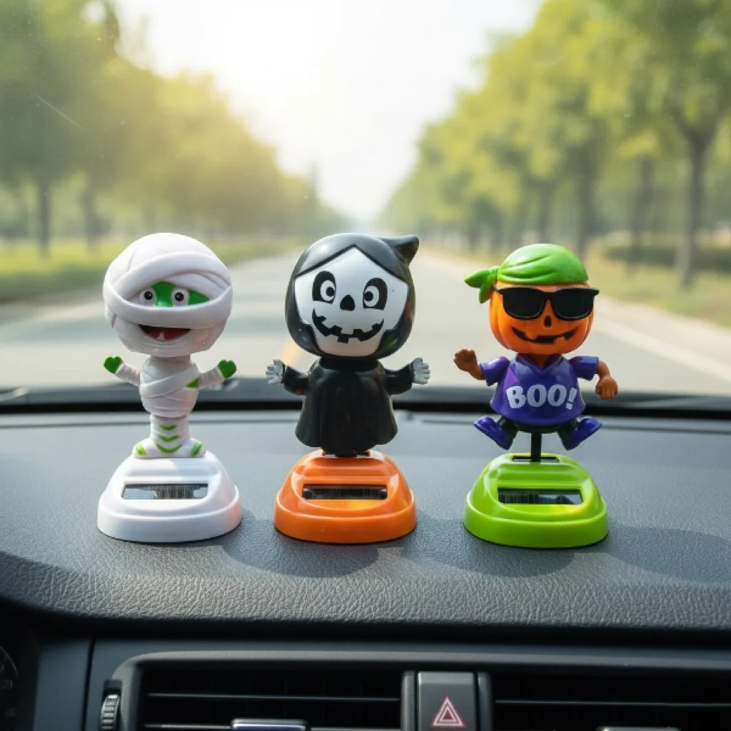 GÜNEŞ ENERJİLİ SOLAR SALLANAN CADILAR BAYRAMI MODELLERİÜrün ÖzellikleriGüneş Enerjili Solar Sallanan Cadılar Bayramı Modelleri, eğlenceli tasarımı ve hareketli yapısı ile masaüstü ve vitrin dekorasyonlarına dikkat çekici bir hava katar. Solar panel tabanı sayesinde ışık aldığı sürece sallanma hareketi yapan solar sallanan figür, pil veya kablo gerektirmeden çalışır. Cadılar Bayramı temalı tasarımı ile öne çıkan Cadılar Bayramı masa süsü, balkabağı, mumya ve iskelet karakterli modellerden oluşur. Ürün gönderimi görseldeki modellerden biri olacak şekilde karışık yapılmaktadır. Renkli ve eğlenceli görünümü ile özellikle masaüstü dekorasyonu, araç içi dekorasyonu, vitrin süsleme ve konsept parti ortamlarında tercih edilen güneş enerjili dekoratif oyuncak, hafif yapısı sayesinde kolayca konumlandırılabilir.Ürün Teknik Özellikleri Özellik Açıklama Ürün Adı Güneş Enerjili Solar Sallanan Cadılar Bayramı Modelleri Çalışma Şekli Solar (Güneş Enerjili) Tema Cadılar Bayramı Model Karışık Gönderim Kullanım Alanı Masaüstü ve Vitrin Dekorasyonu Paket İçeriği1 Adet Güneş Enerjili Solar Sallanan Cadılar Bayramı Modeli (Karışık)