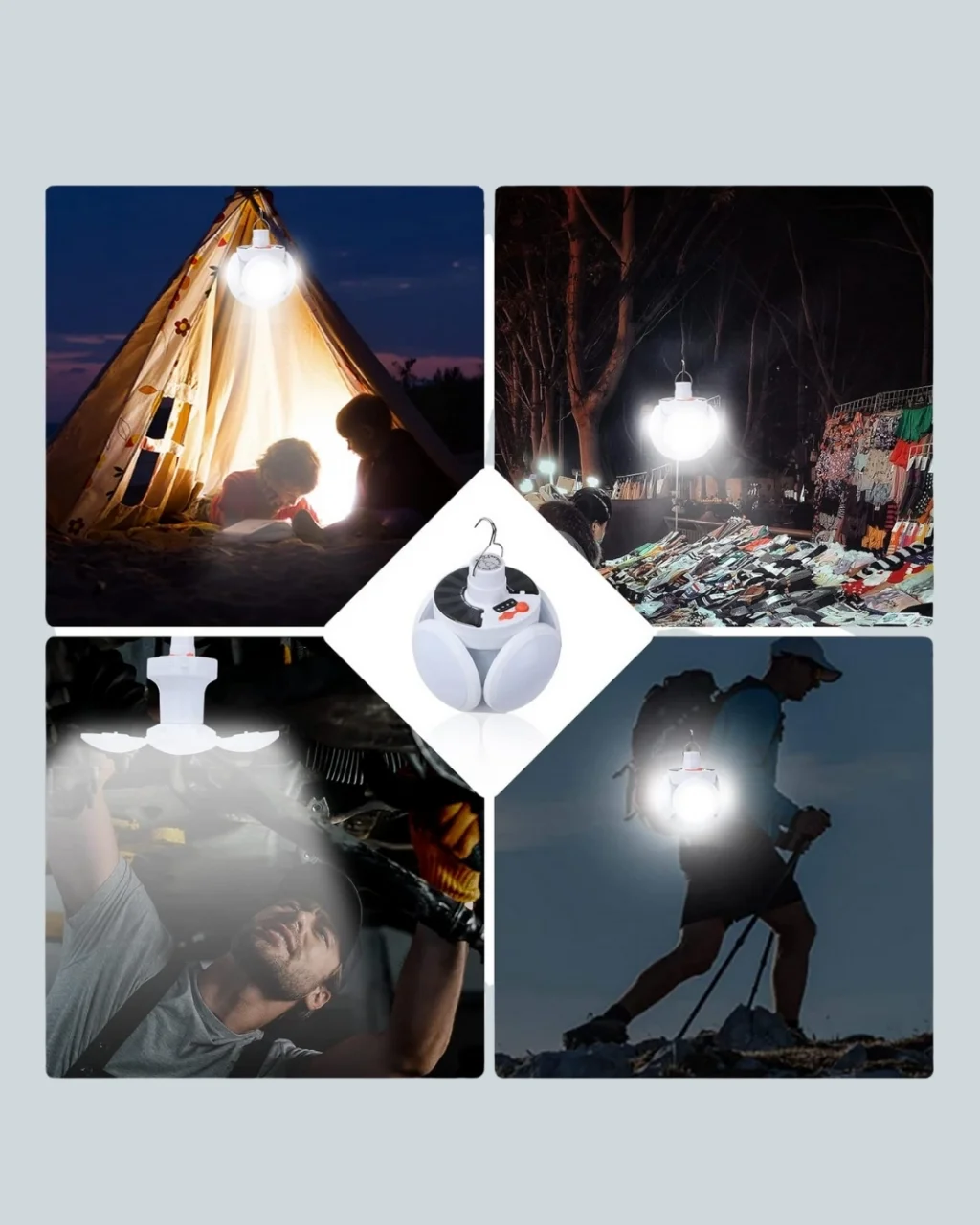 Gelişmiş aydınlatma performansı ve çok yönlü kullanım imkânı sunan bu katlanabilir LED kamp lambası, kampçılar, açık hava tutkunları ve acil durum hazırlıkları için ideal bir çözümdür. Dört adet LED panel, 90 dereceye kadar katlanabilir yapısıyla 360 dereceye yakın geniş bir alanı aydınlatabilir. Geniş açılı ışık dağılımı sayesinde çadır, bahçe, garaj veya karavan gibi farklı ortamları homojen bir şekilde aydınlatır.Güneş paneli ile gün içinde kolayca şarj olabilen cihaz, aynı zamanda USB girişi sayesinde priz veya powerbank aracılığıyla da şarj edilebilir. 1200 mAh lityum iyon pili ile uzun süreli kullanım sağlar ve sık sık pil değiştirme derdini ortadan kaldırır. 5 farklı ışık modu (yüksek, orta, düşük, flaş, SOS) ile ortama uygun parlaklık seviyesini seçebilir, uzaktan kumanda ile kontrolü kolayca gerçekleştirebilirsiniz.IPX4 su geçirmezlik seviyesi, yağmur veya nemli koşullarda bile kesintisiz kullanım sunar. Hafif ama dayanıklı plastik gövdesi, dış mekan şartlarına uygun şekilde üretilmiştir. Üst kısmında yer alan asma kancası sayesinde kolayca çadıra, ağaca ya da tavan bağlantılarına monte edilebilir.Evde elektrik kesintileri için acil durum lambası, doğada kamp veya gece yürüyüşleri için güçlü bir aydınlatıcı ya da bahçenizde dekoratif bir ışık kaynağı olarak güvenle kullanılabilir. Hem şık hem fonksiyonel bu çok amaçlı kamp lambası, pratikliğiyle vazgeçilmez eşyalarınız arasında yerini alacak.