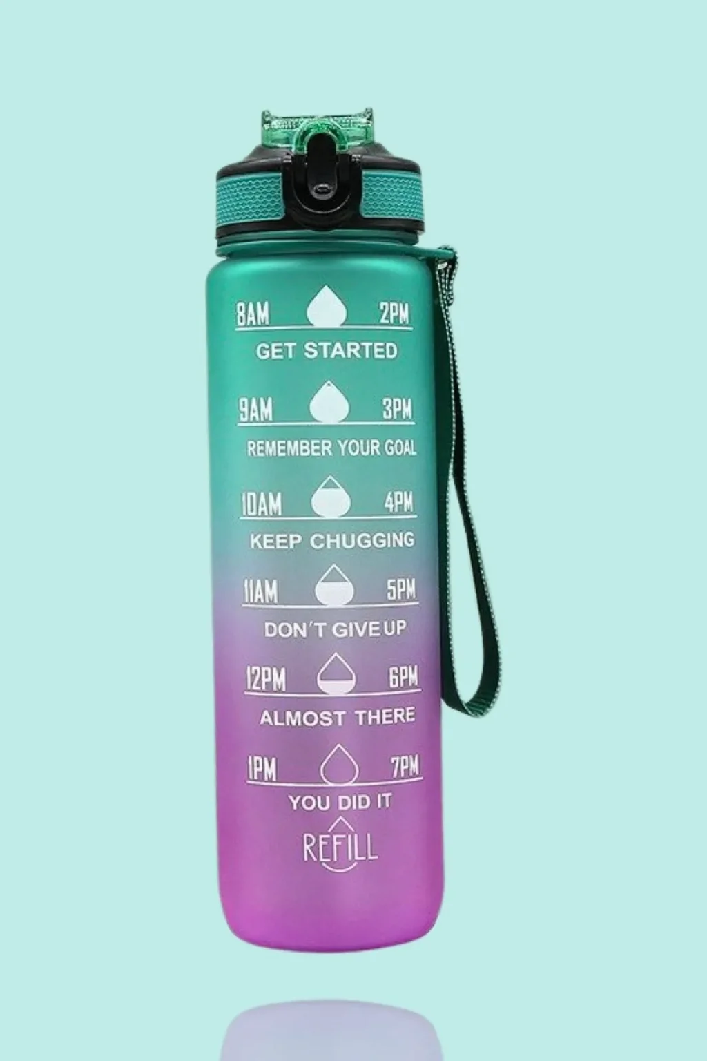 GÜNLÜK MOTİVASYON SU MATARASI 1000 ml Motivasyonel Zaman Çizelgeli Su Matarası İlham verici alıntılar ve net zaman işaretçisi ile bu su matarası günlük su alımını izlemek ve gün boyunca su tüketimini teşvik etmek için harikadır.Birbirinden farklı canlı renk tasarımlarıyla yalnızca kendiniz için değil, aynı zamanda sevdikleriniz için güzel bir hediyedir.Bu uzun ömürlü su matarası sayesinde günlük pet şişe kullanımınızı azaltabilirsiniz.1000 ml. kapasitesi ile suyunuzu günde birçok kez yeniden doldurmak zorunda kalma sorununu çözer.Açılabilir geniş ağzı sayesinde buz küpleri ve meyvelerle doldurulması ve temizlenmesi kolaydır.Gelişmiş tasarımı sayesinde su akıtmaz akıntı yapmaz, farklı kullanım seçenekleri ile pipetli veya pipetsiz olarak kullanılabilir, özel sapı ile her yere kolaylıkla taşınabilir.BPA VE TOKSİT MADDE İÇERMEZ SAĞLIK DOSTU BİR ÜRÜNDÜR !Lütfen bulaşık makinesinde veya sıcak su ile yıkamayınız.Sıcak içecekler için uygun değildir.Kapağı 2 kademeli açılmaktadır, kapağı sonuna kadar ittirin, kapak sabitlenecektir, böylelikle suyunuzu daha rahat içebilirsiniz.Hedefe ulaşmadan bırakmak yok!Planlayıcı ve motive edici tasarımı sizi günlük su içme hedefinize ulaşmaya teşvik eder.Kolay taşınabilir şık tasarımıyla antrenmanlarınızda ve gün içinde yanınızdan ayırmak istemeyeceksiniz.Paket İçeriği 1 adet günlük motivasyon su matarasıÜrünler Stok Durumuna Göre Renk Gönderilecektir!!!