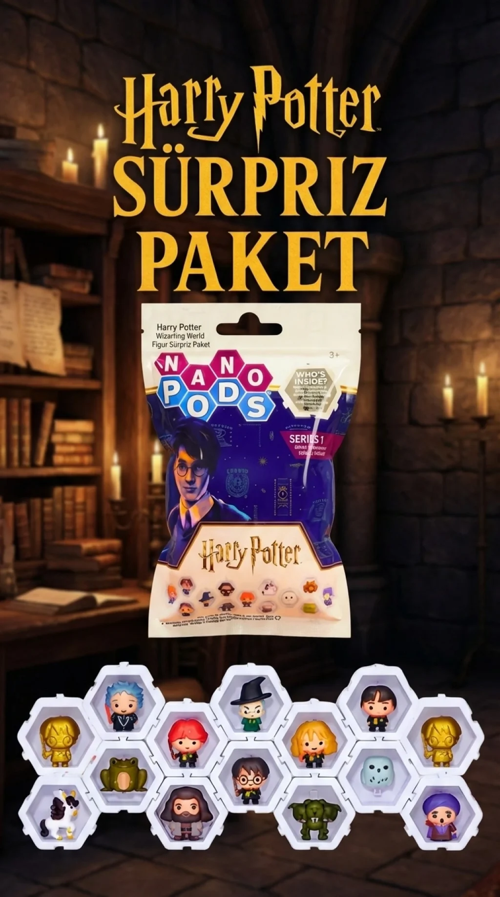 Harry Potter serisinin büyülü dünyasına adım atın. Paketten çıkan figürler, koleksiyonunuza sürpriz bir katkı sağlar. Çocuklar ve yetişkin koleksiyonerler için uygun olan bu figürler, detaylı tasarımları ile dikkat çeker.