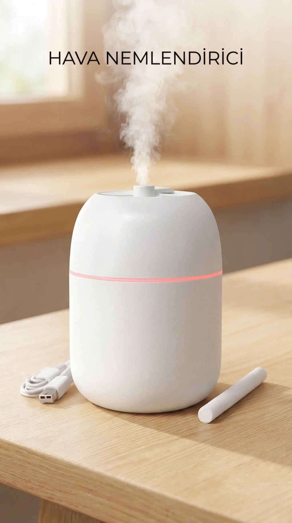 Hava nemlendirici, 220 mililitre su kapasitesine sahip olup, ortamda buhar oluşturarak hava nem oranını artırır. Sağlıklı ve konforlu bir iç ortamı destekler. Elektronik kontrol paneli ve ayarlanabilir buhar çıkış özellikleriyle kullanımı kolaydır. Ofis, ev veya küçük alanlarda ideal çözüm sunar. Günlük kullanımda hava kuruluğunun önüne geçilmesine yardımcı olurken, solunum yolu rahatsızlıklarını hafifletebilir.