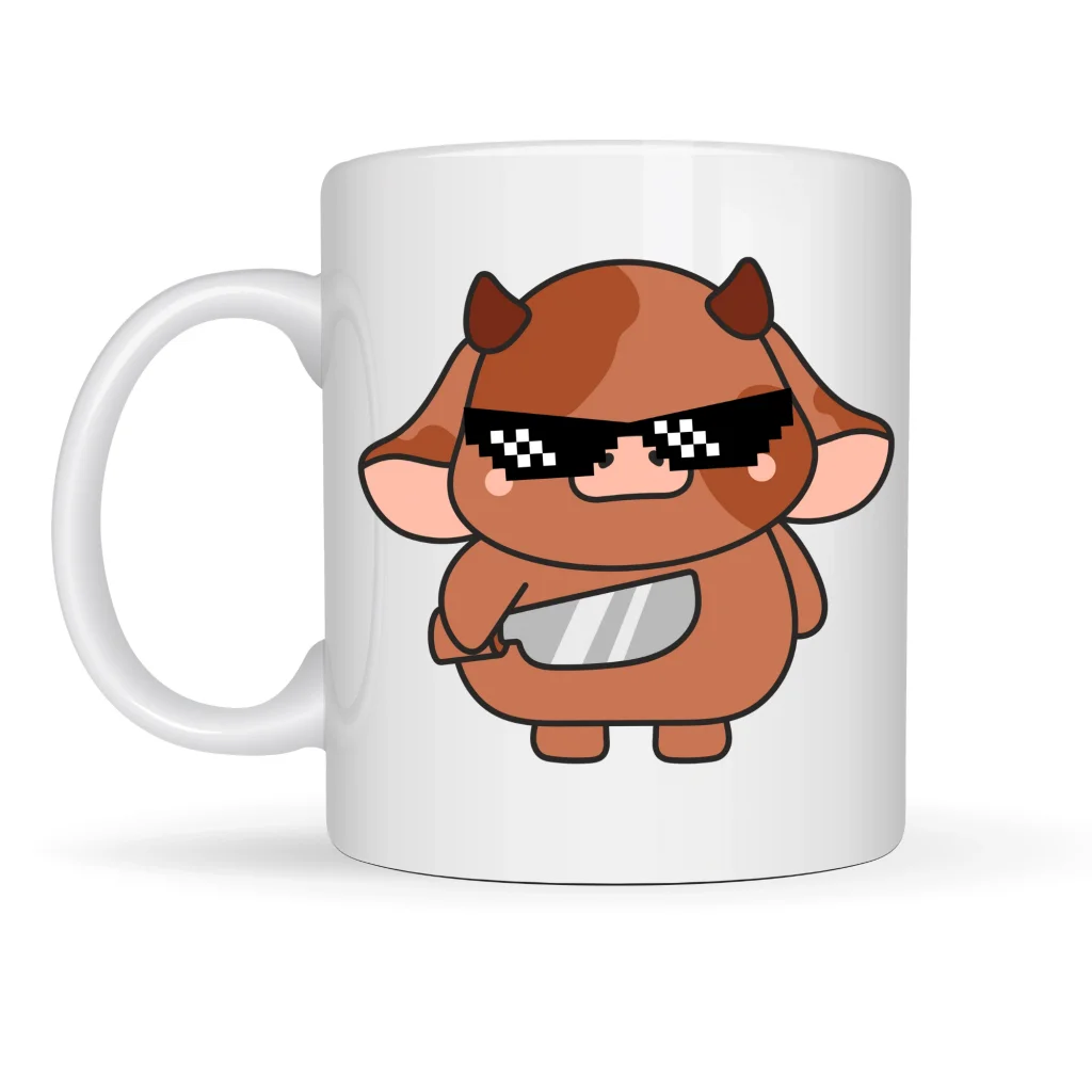 Bu özel tasarım havalı inek figürlü porselen kupa, gözlüğü ve eğlenceli duruşuyla hem sempatik hem de dikkat çekici bir görünüme sahip.