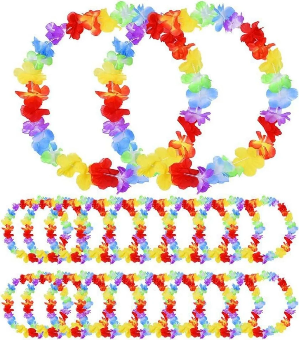 BUĞZ Hawaii Çiçekli Boyun Kolyesi - Renkli Tropikal Parti Leisi 12 Adet
