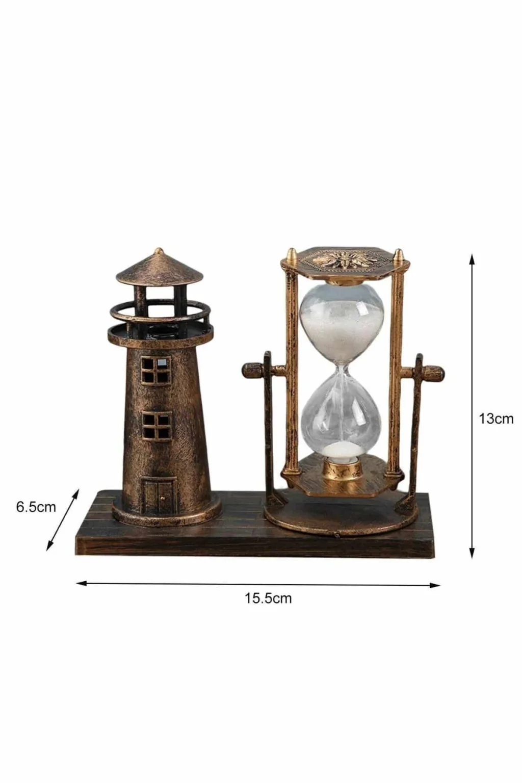 BUĞZ Hediyelik Eşya Retro Ahşap Deniz Feneri Kum Saati Biblo - BUĞZ