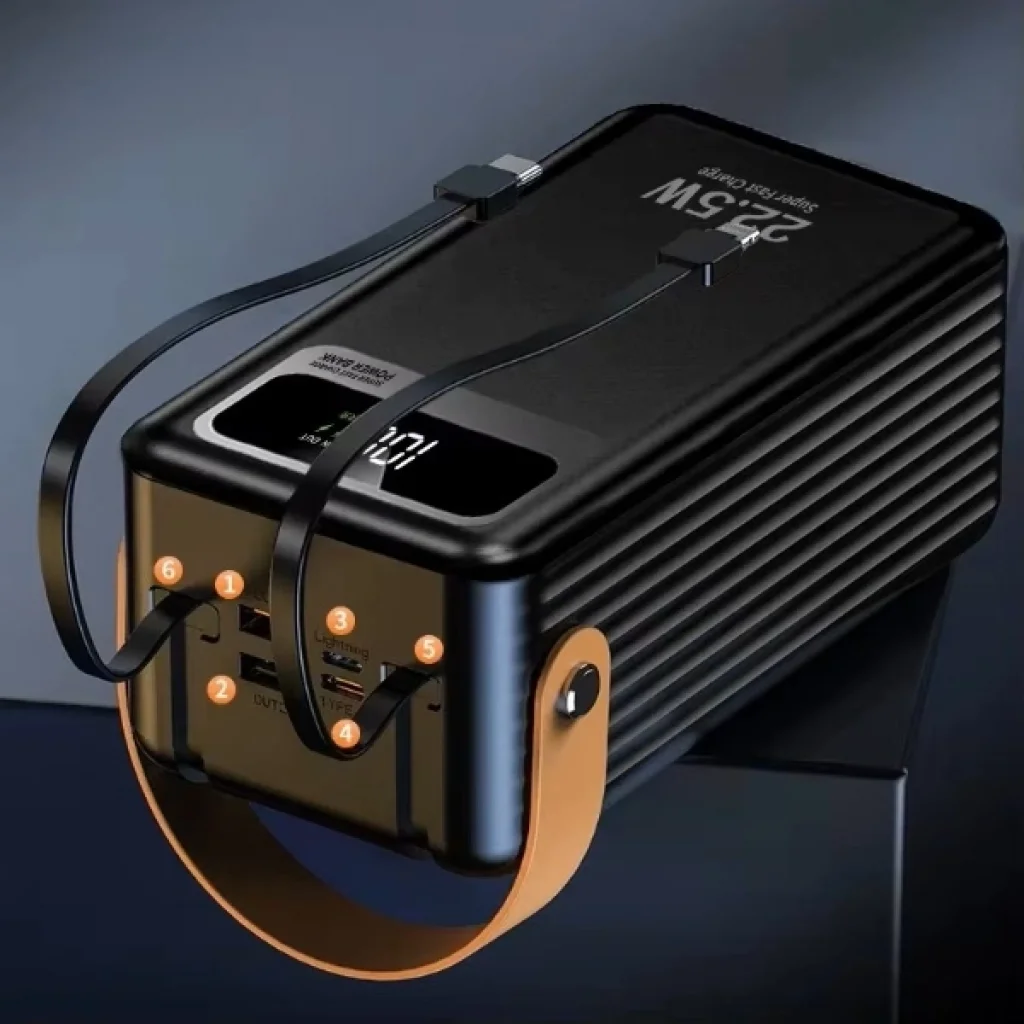 HIZLI ŞARJ ÖZELLİKLİ 60.000 MAH POWERBANK Ürün ÖzellikleriHızlı şarj özellikli 60.000 mAh powerbank P06, yüksek kapasiteli bataryası sayesinde uzun süreli enerji ihtiyacı olan kullanıcılar için güçlü ve güvenilir bir çözüm sunar. Gelişmiş hızlı şarj teknolojisi ile akıllı telefonlar, tabletler, kablosuz kulaklıklar ve diğer USB uyumlu cihazlar kısa sürede şarj edilebilir. Üzerinde bulunan çoklu çıkış portları sayesinde aynı anda birden fazla cihazı şarj edebilme imkânı sunar ve yoğun kullanım senaryolarında zaman kazandırır. Dahili dijital ekranı, anlık pil yüzdesini ve çıkış gücünü net şekilde göstererek kontrolü kullanıcıya bırakır. Entegre taşıma sapı ile taşınabilirliği artırılmış olan bu powerbank, kamp, seyahat, açık alan aktiviteleri ve acil durumlar için idealdir. Dayanıklı gövde yapısı, uzun ömürlü batarya performansı ve stabil enerji aktarımı ile yüksek kapasiteli powerbank arayanlar için güçlü bir alternatiftir.Paket İçeriği1 adet 60.000 mAh hızlı şarj özellikli powerbank