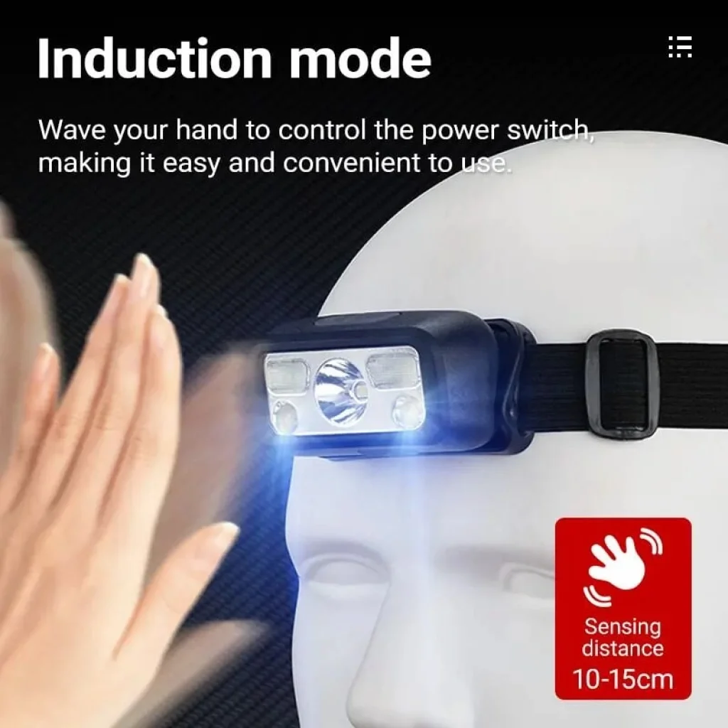 BUĞZ HS-43 Sensörlü Şarjlı Type-C Çok Amaçlı Kırmızı Işıklı Kafa Lambası