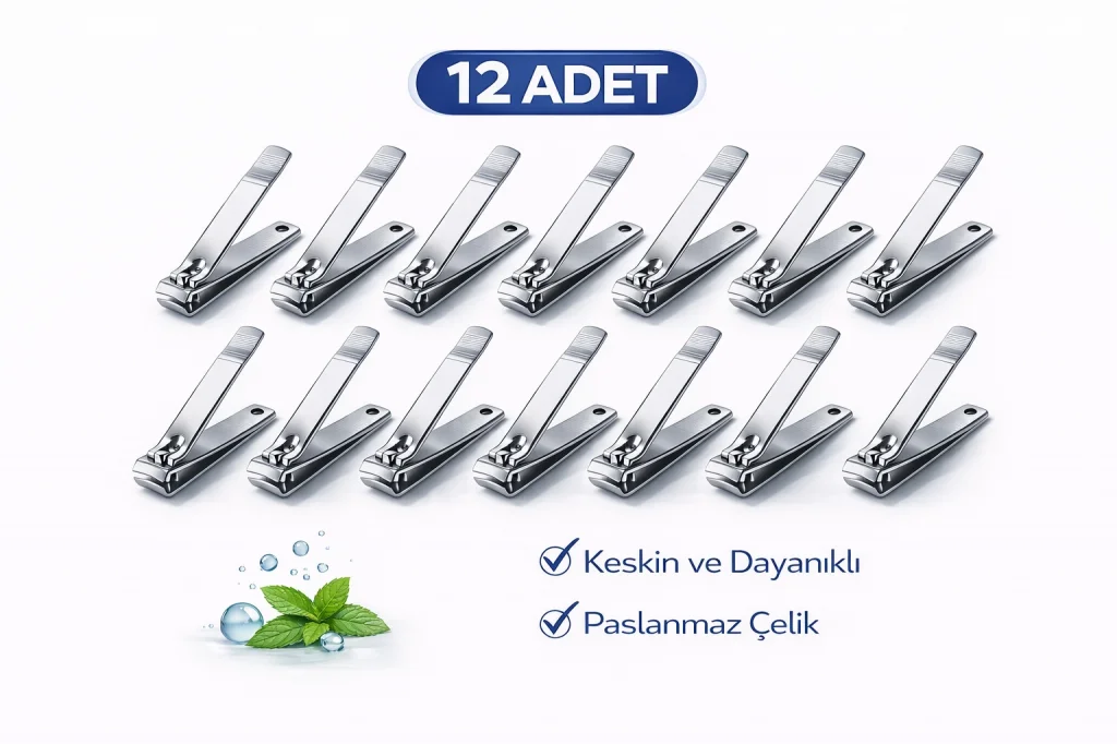 İMA Büyük Boy Tırnak Makası Profesyonel Nail Clipper 12 Adet Profesyonel büyük boy tırnak makası, el ve ayak tırnak bakımında güçlü ve düzgün kesim sağlar. Keskin paslanmaz çelik ağız yapısı sayesinde kalın ve sert tırnaklarda dahi etkili performans sunar. Ergonomik tasarımı ile rahat kavrama sağlar ve kontrollü kesim imkanı verir. Ürün 2 farklı varyasyon ile sunulmaktadır: • 12 Adet: Kişisel kullanım için ideal ve ekonomik seçenek. Ürün Özellikleri: