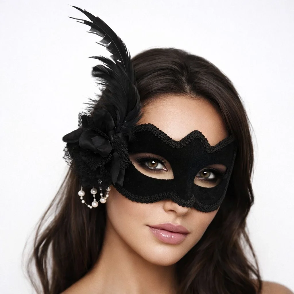 İNCİ DETAYLI SİYAH SÜET VENEDİK KADIN MASKESİÜrün Özellikleriİnci Detaylı Siyah Süet Venedik Kadın Maskesi, zarif ve feminen tasarımı ile balo, davet ve temalı organizasyonlarda dikkat çekici bir stil sunar. Siyah süet yüzeye sahip olan siyah Venedik maskesi, yüz formuna uyum sağlayan yapısı sayesinde hem estetik hem de rahat bir kullanım sağlar. Yan kısmında yer alan beyaz inci süslemeleri, zarif gül detayı ve tüy aksesuarı ile zenginleştirilen inci detaylı balo maskesi, maskeye şık ve sofistike bir görünüm kazandırır. Süet kaplama yüzeyi ile öne çıkan kadın parti maskesi, maskeli balo, özel davet ve kostüm etkinliklerinde kombinlerin tamamlayıcı parçası olarak tercih edilebilir. Hafif yapısı sayesinde uzun süreli kullanımlarda konfor sunar.Ürün Teknik Özellikleri Özellik Açıklama Ürün Adı İnci Detaylı Siyah Süet Venedik Kadın Maskesi Renk Siyah Yüzey Süet Kaplama Detay İnci, Gül ve Tüy Aksesuar Kullanım Kadın Paket İçeriği1 Adet İnci Detaylı Siyah Süet Venedik Kadın Maskesi
