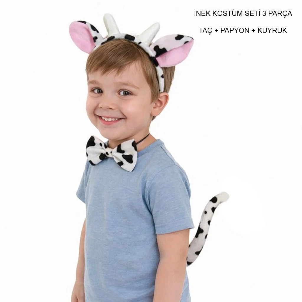 BUĞZ İnek Kostüm Aksesuar Seti 3 lü - Taç Papyon Kuyruk