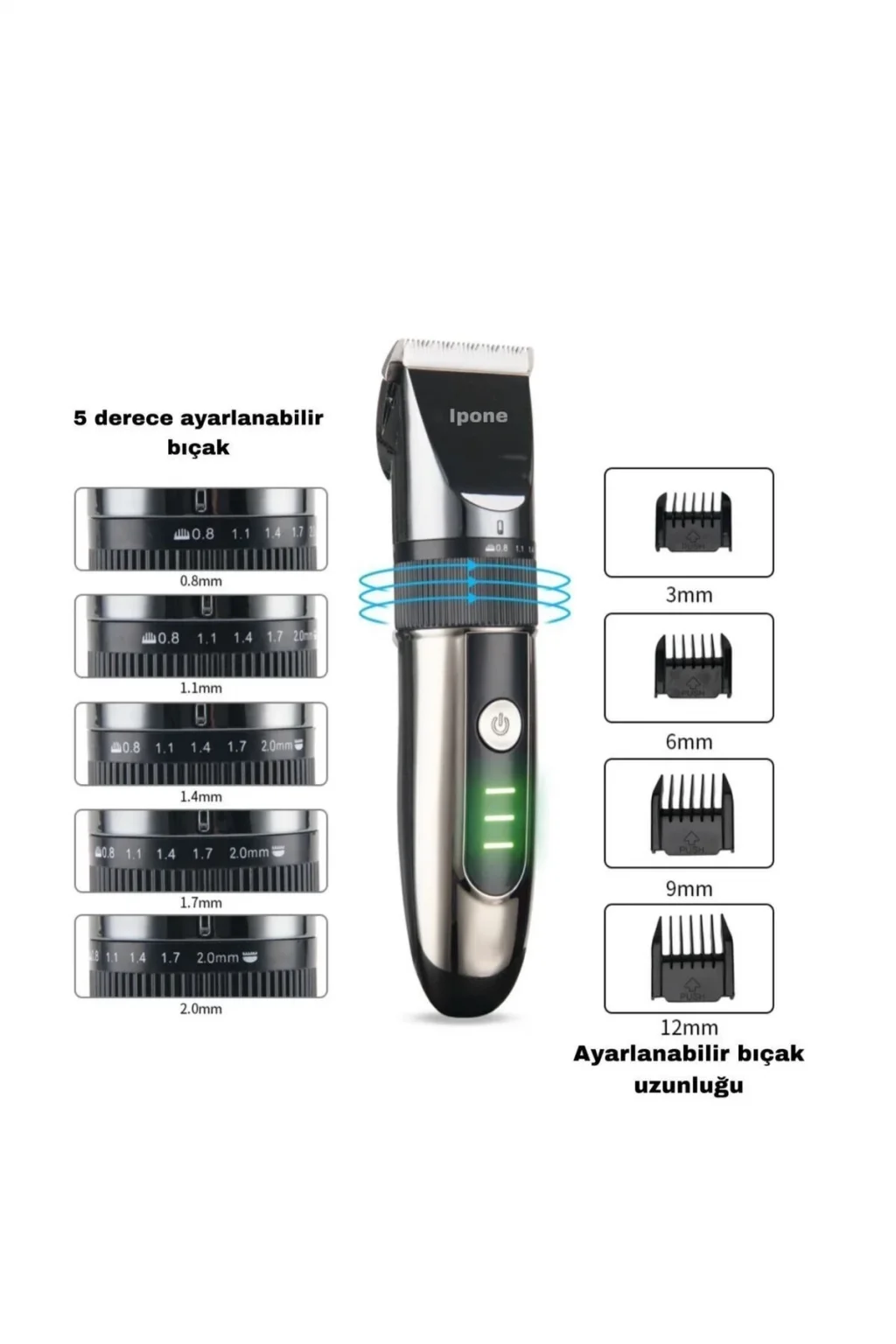 Her erkek saç ve sakal bakımıyla duruşuna ayrı bir hava katmak ister. Özenli bir saç ve sakal bakımı için ise tüm özellikleri ile kullanışlı ve fonksiyonel bir tıraş makinesine gereksinim duyulur. IP 1012 Tıraş Makinesi sağlıklı ve bakımlı saç ve sakallar için tam bir uzmandır. Şık tasarımıyla da kullanıcılardan tam not alan ürün ile siz de hem saçlarınız hem de sakallarınız ile dikkat çekici bir görünüm elde edebilirsiniz.