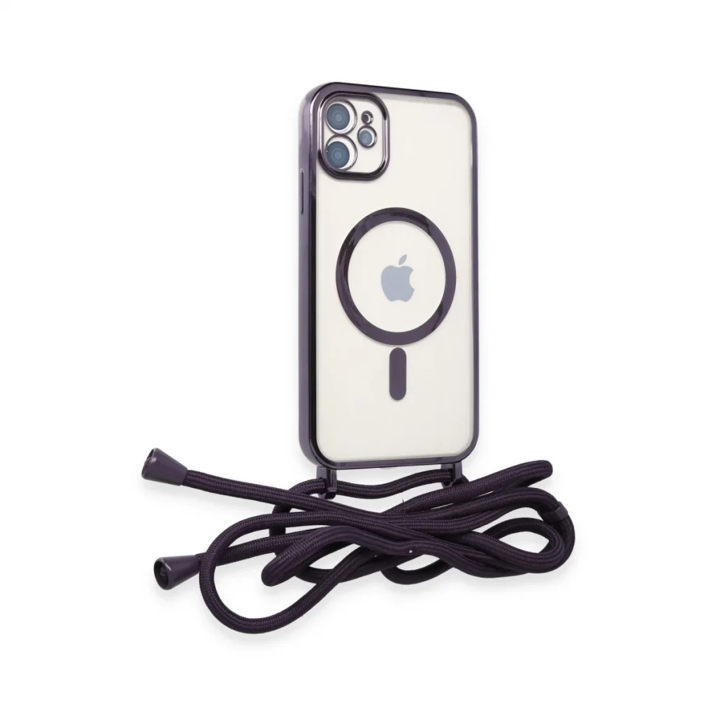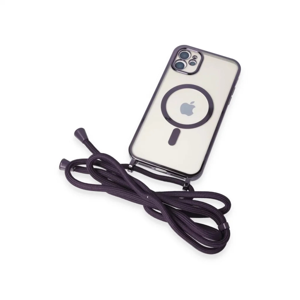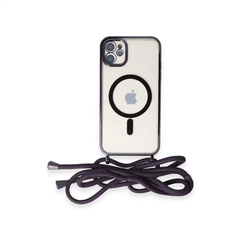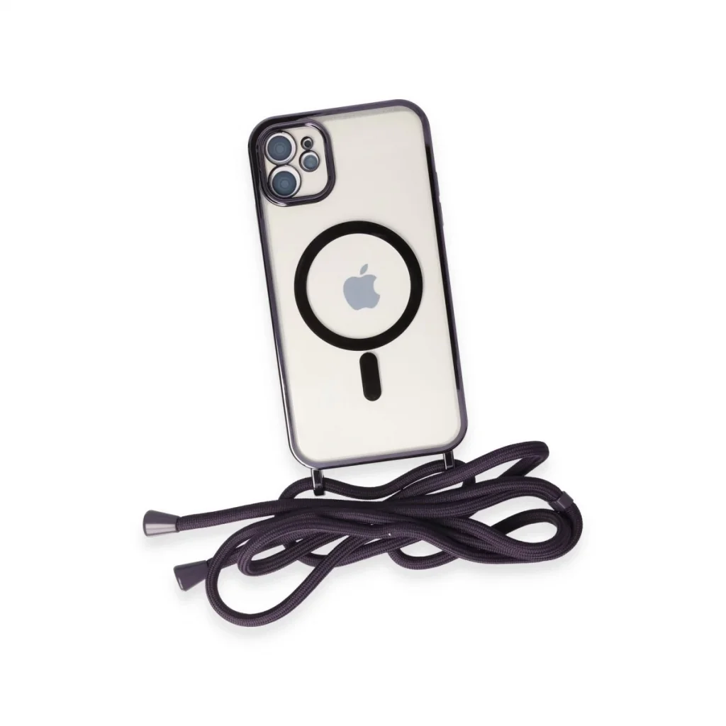 İphone 11 Kılıf Divo Lazer Askılı Magsafe Kapak - Derin Mor
