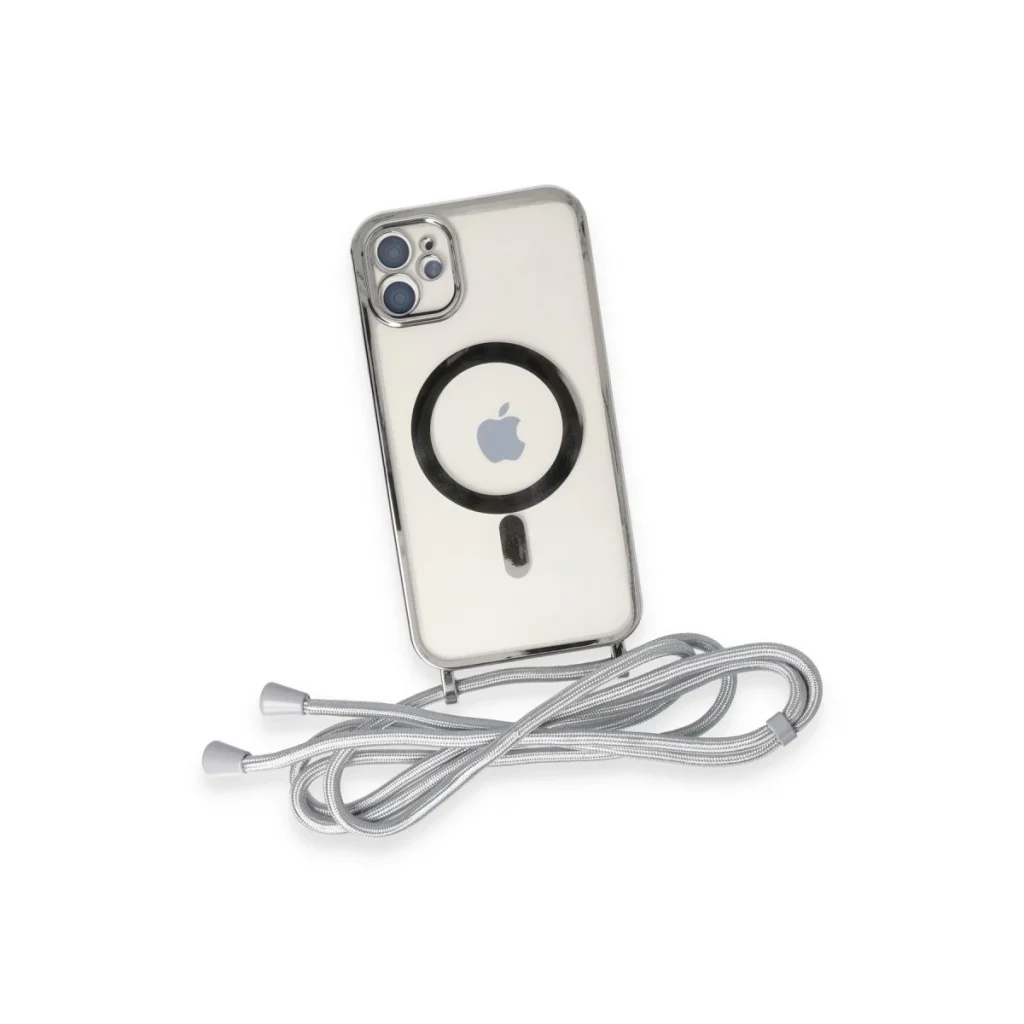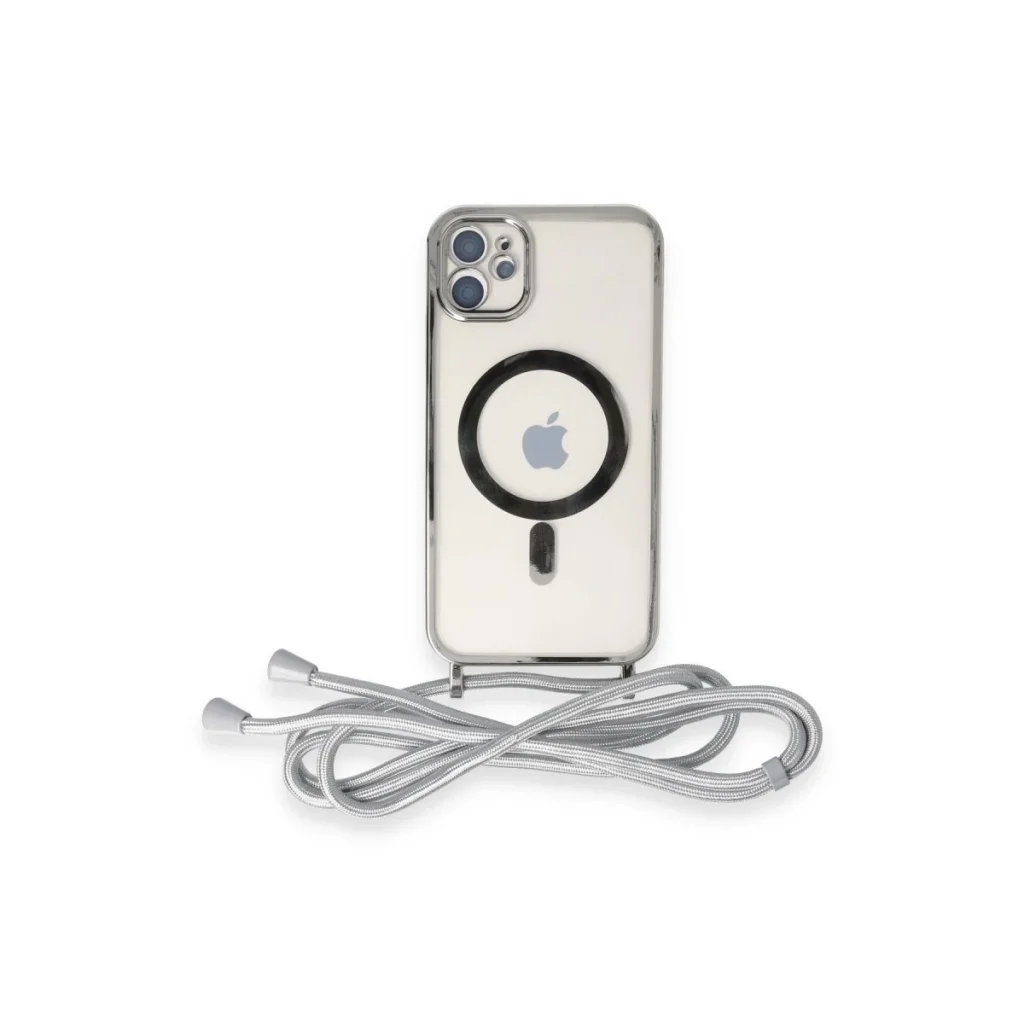 İphone 11 Kılıf Divo Lazer Askılı Magsafe Kapak - Gümüş