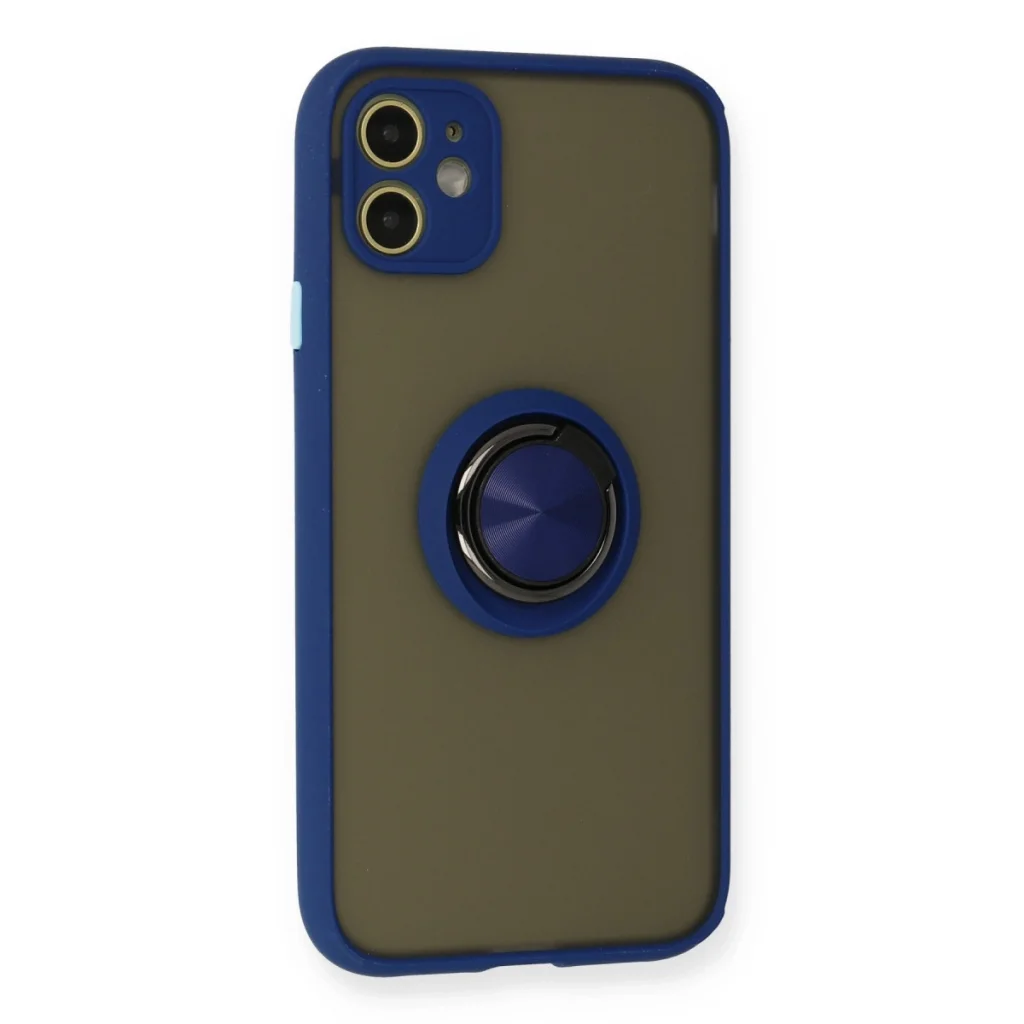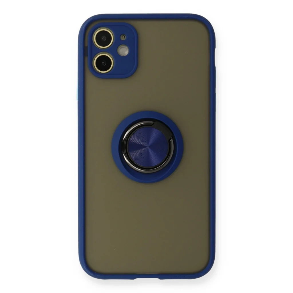 İphone 11 Kılıf Montreal Yüzüklü Silikon Kapak - Lacivert