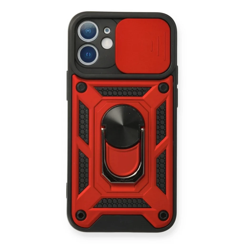 İphone 11 Kılıf Pars Lens Yüzüklü Silikon - Kırmızı