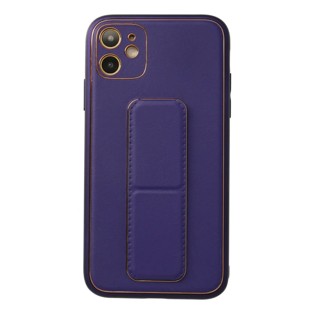 BUĞZ İphone 12 Kılıf Coco Deri Standlı Kapak - Mor