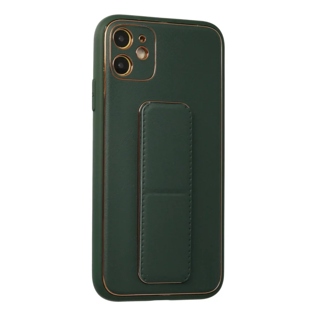 BUĞZ İphone 12 Kılıf Coco Deri Standlı Kapak - Yeşil