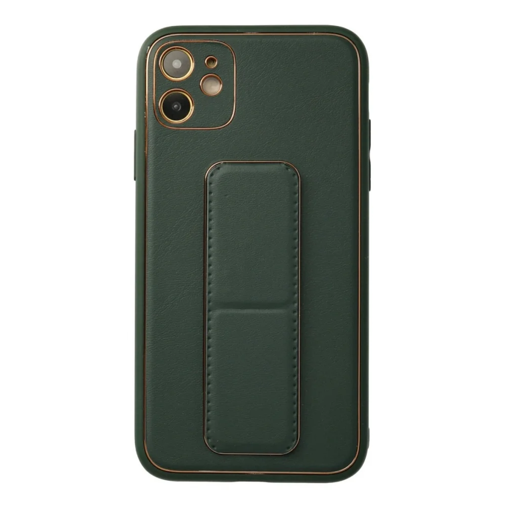 BUĞZ İphone 12 Kılıf Coco Deri Standlı Kapak - Yeşil