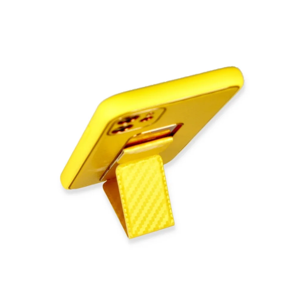 BUĞZ İphone 12 Kılıf Coco Karbon Standlı Kapak - Sarı
