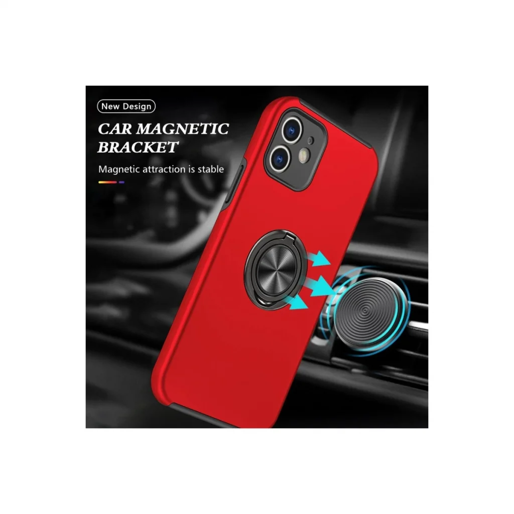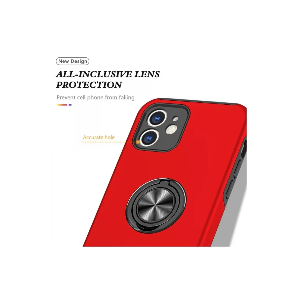 İphone 12 Kılıf Elit Yüzüklü Kapak - Kırmızı