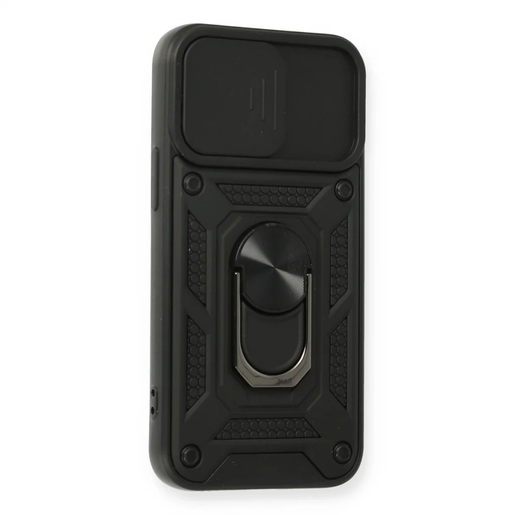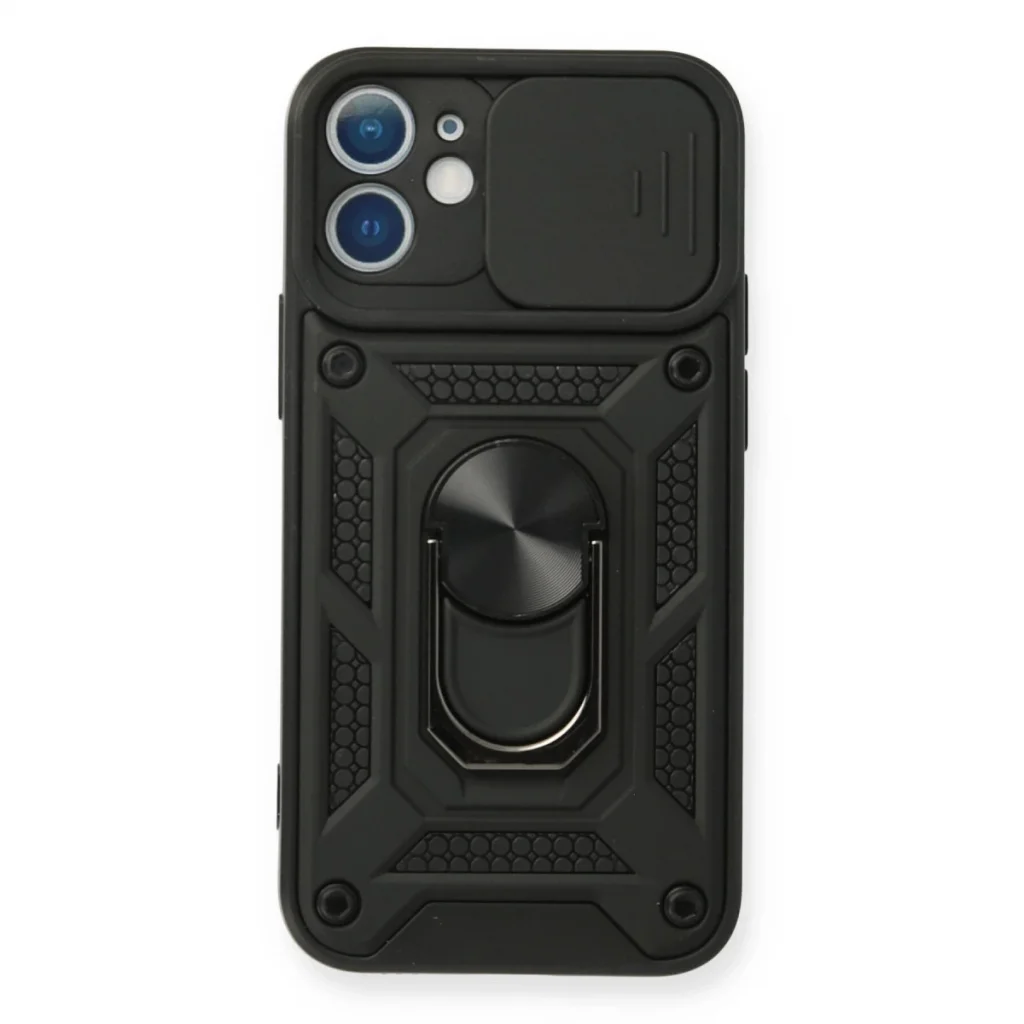İphone 12 Mini Kılıf Pars Lens Yüzüklü Silikon - Siyah