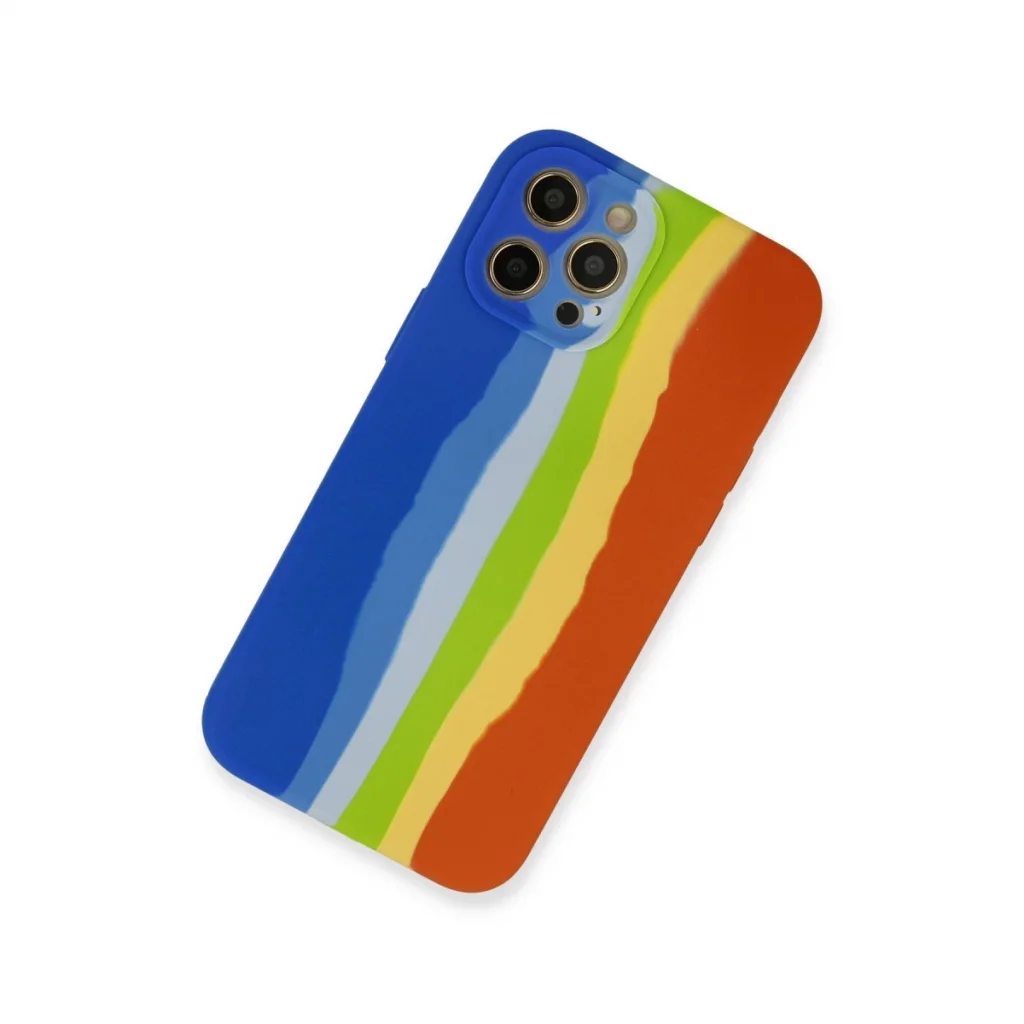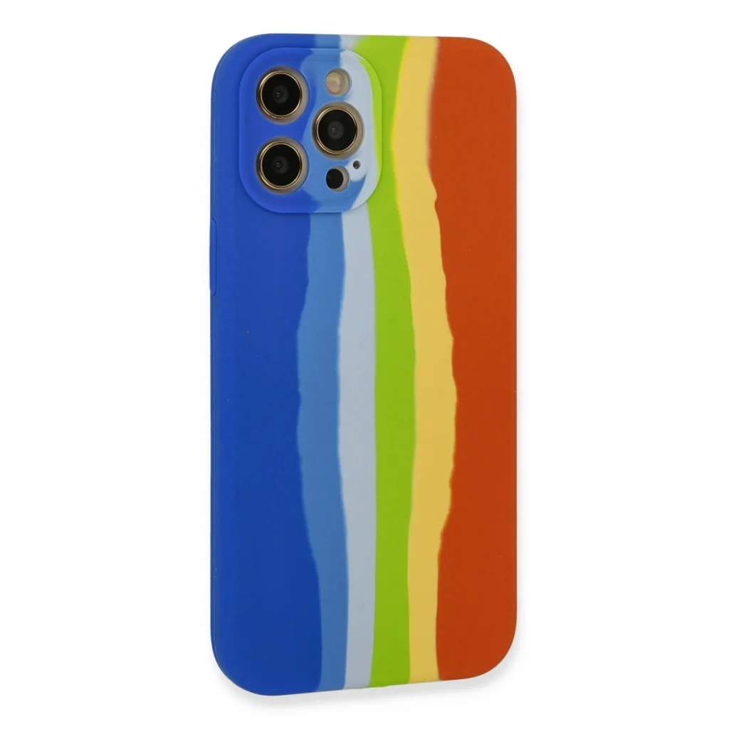 İphone 12 Pro Kılıf Ebruli Lansman Silikon - Mavi-turuncu