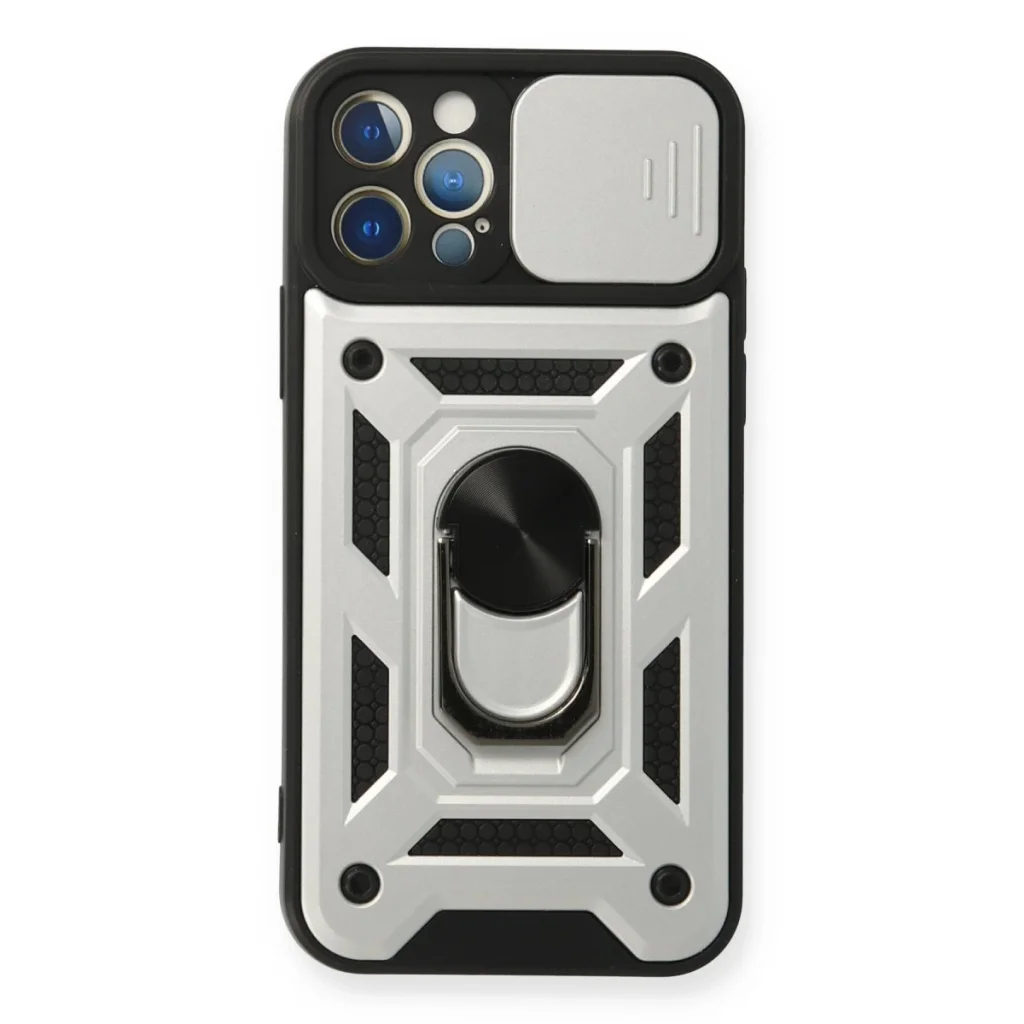 İphone 12 Pro Kılıf Pars Lens Yüzüklü Silikon - Gümüş