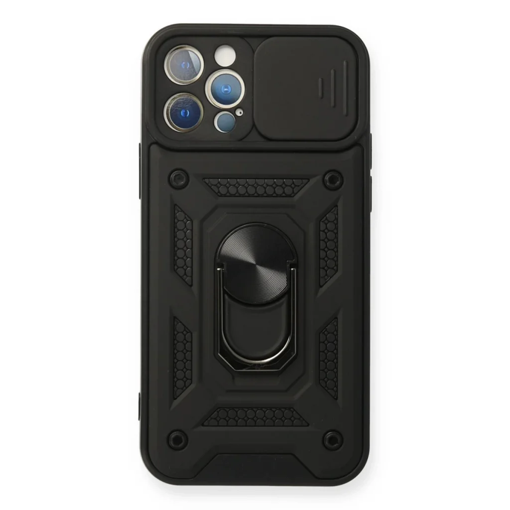 İphone 12 Pro Kılıf Pars Lens Yüzüklü Silikon - Siyah