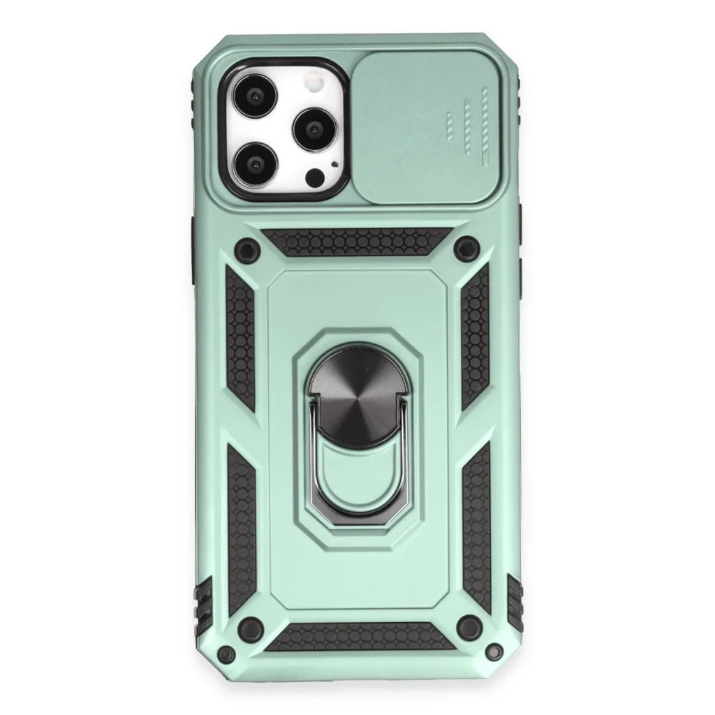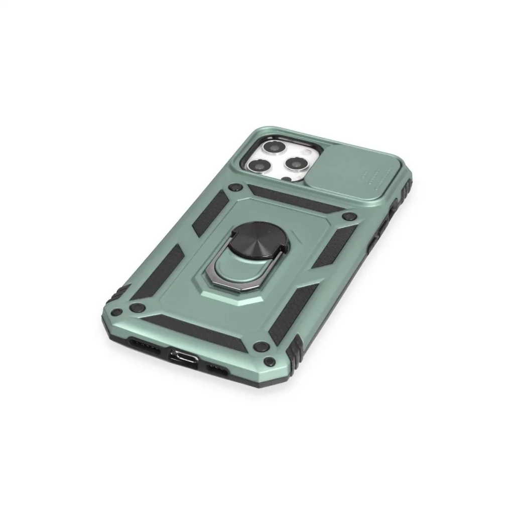 İphone 12 Pro Max Kılıf Pars Lens Yüzüklü Silikon - Yeşil